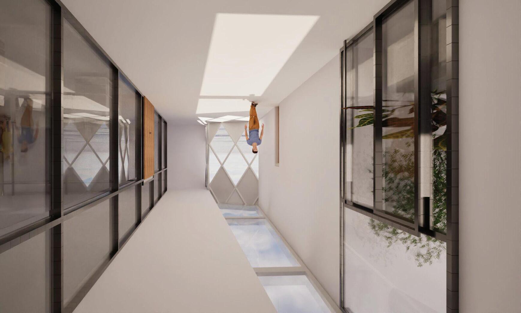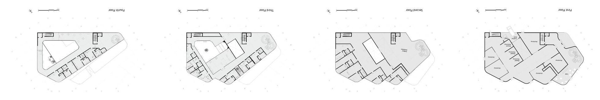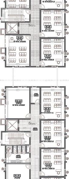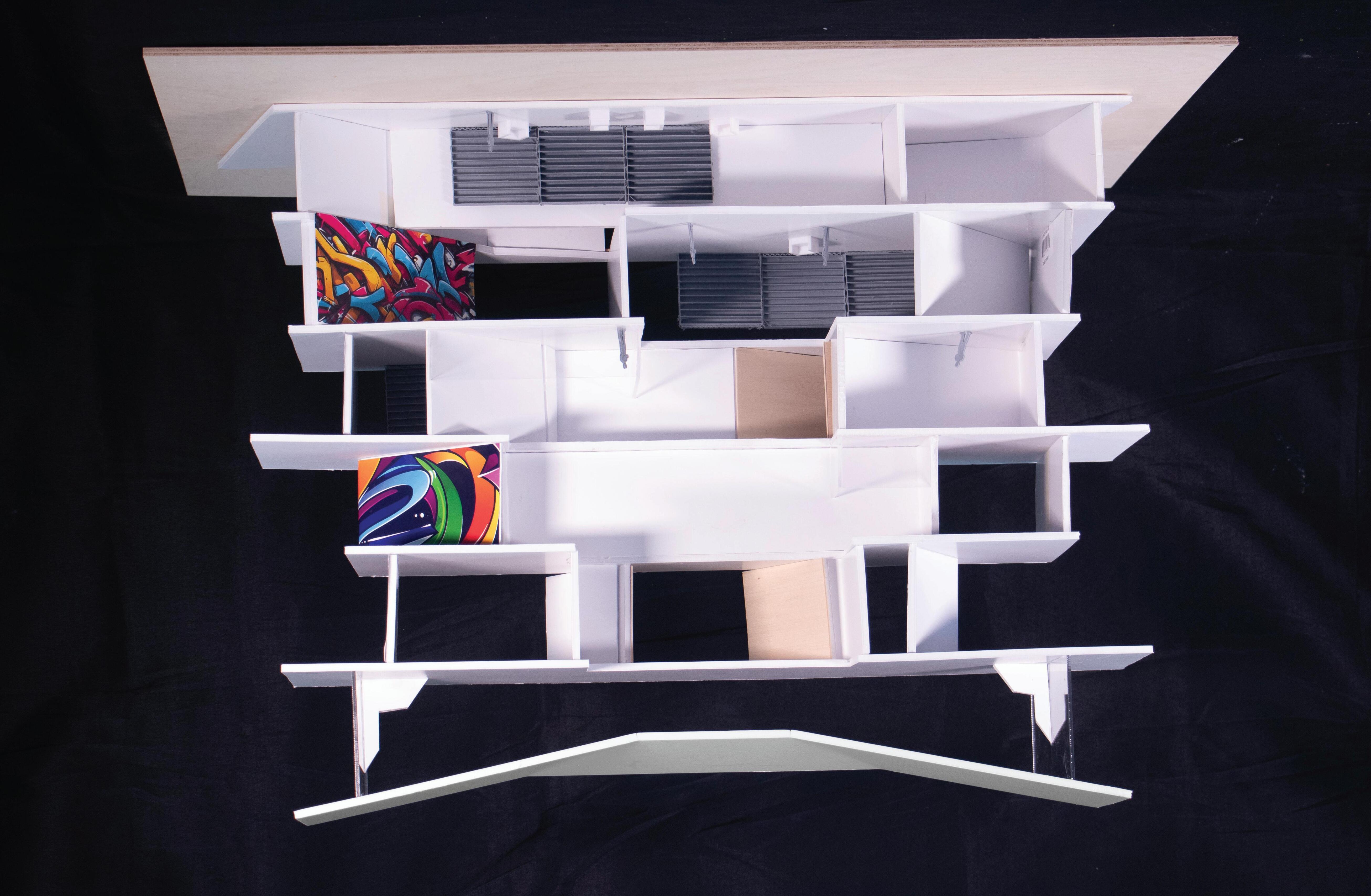Urban Frame responds to Oakland’s context with an interactive design that evolves into a panoramic topfloor platform. Zoning supports diverse users: adults engage with community outreach on the first floor, children enjoy a playful cozy second floor with a café for the parents, and teens have a third-floor lounge. Upper levels house staff functions. A translucent roof and strategic glazing enhance daylight and city views.