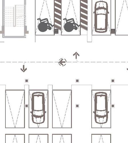 The library has two entrances: one for families from the residential side with a front desk, stairs, and elevators nearby; the other from the non-residential side, less directly connected. Site context