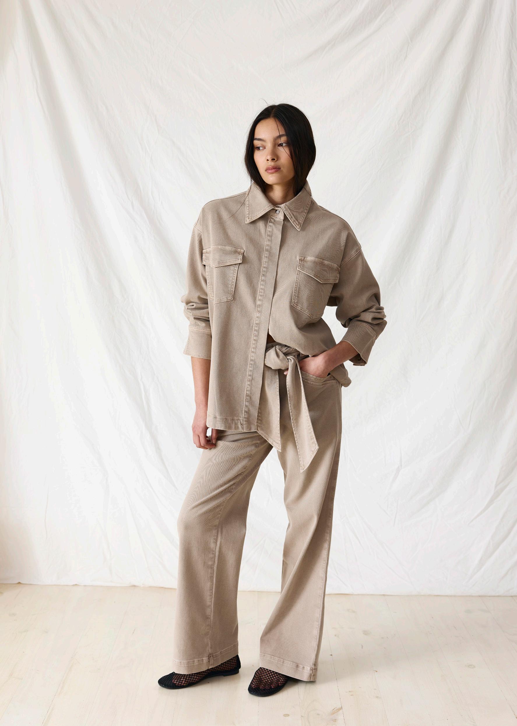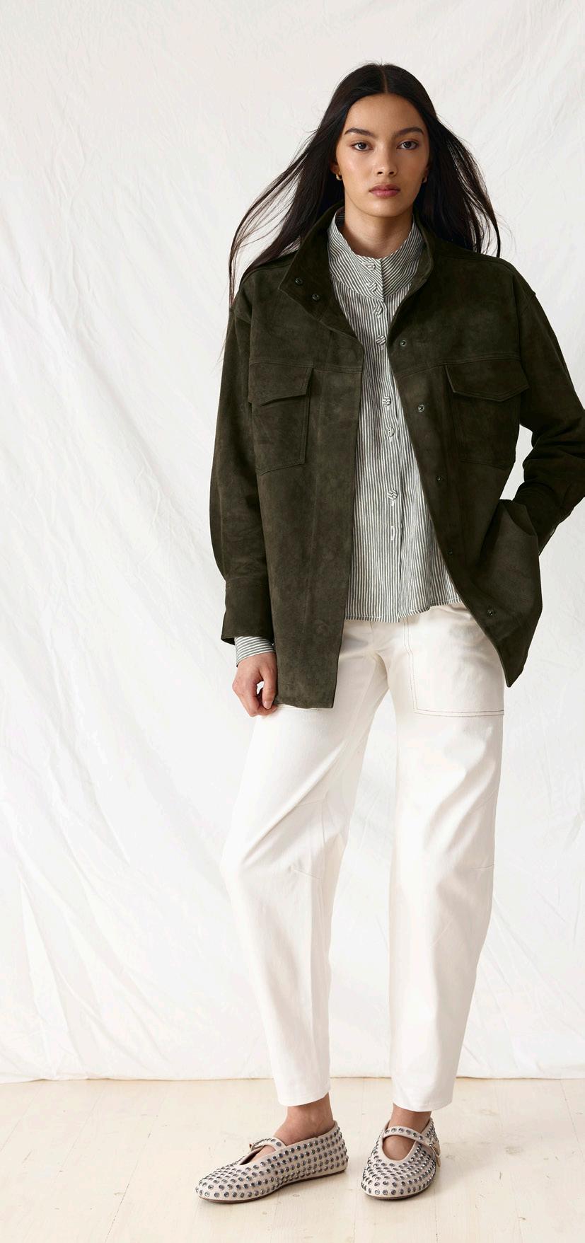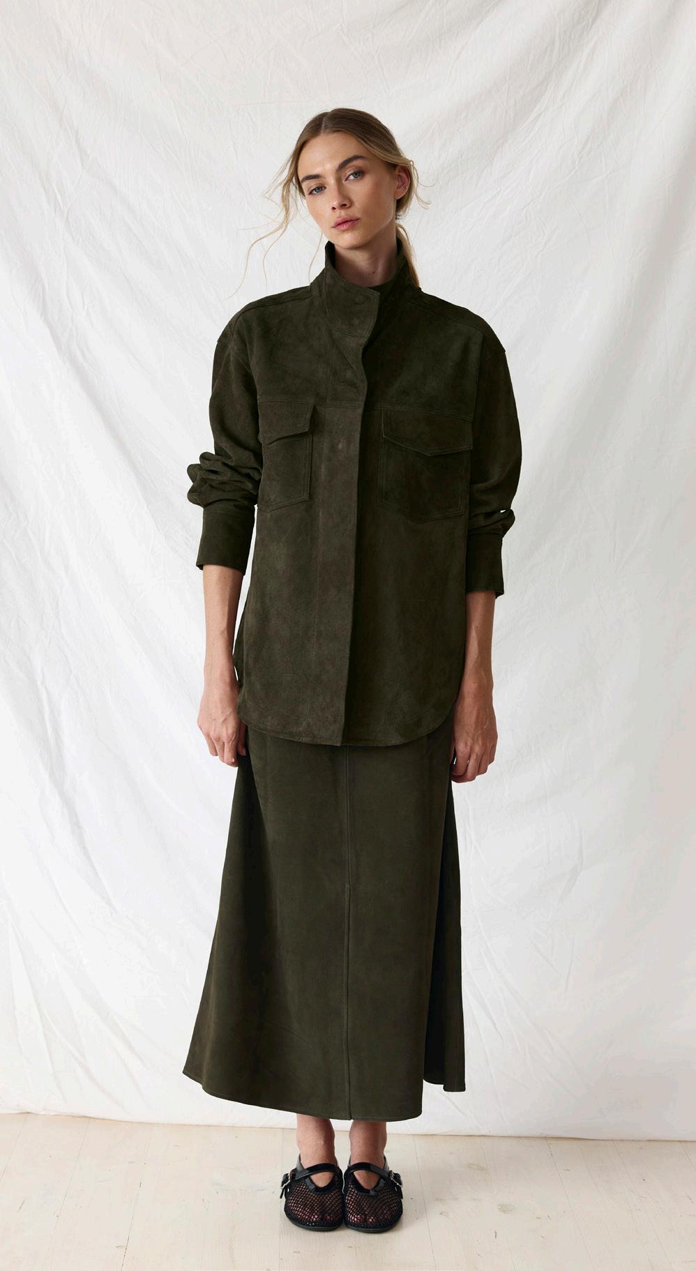 #3590 lune suede shirt. olive options. biscotti