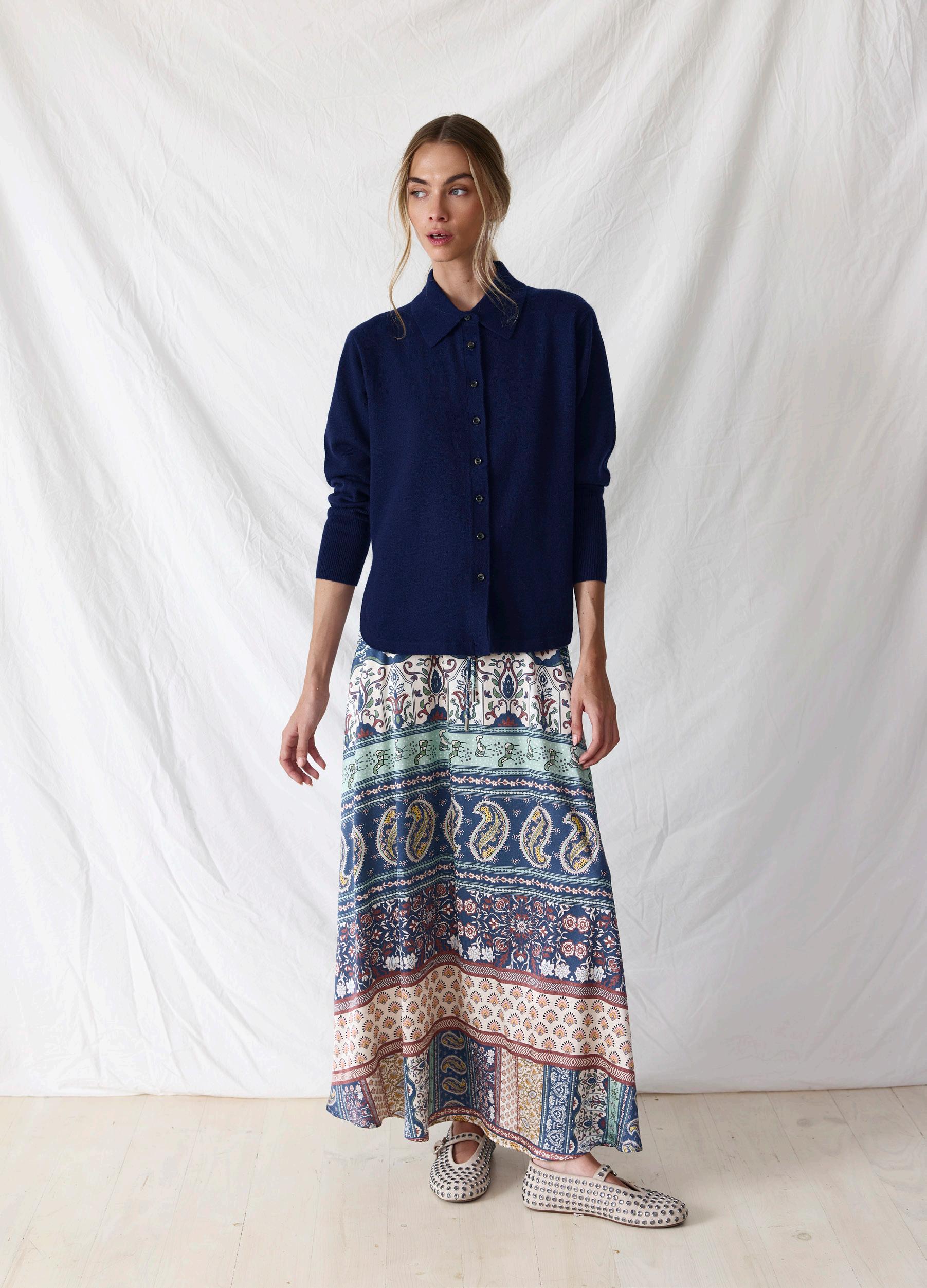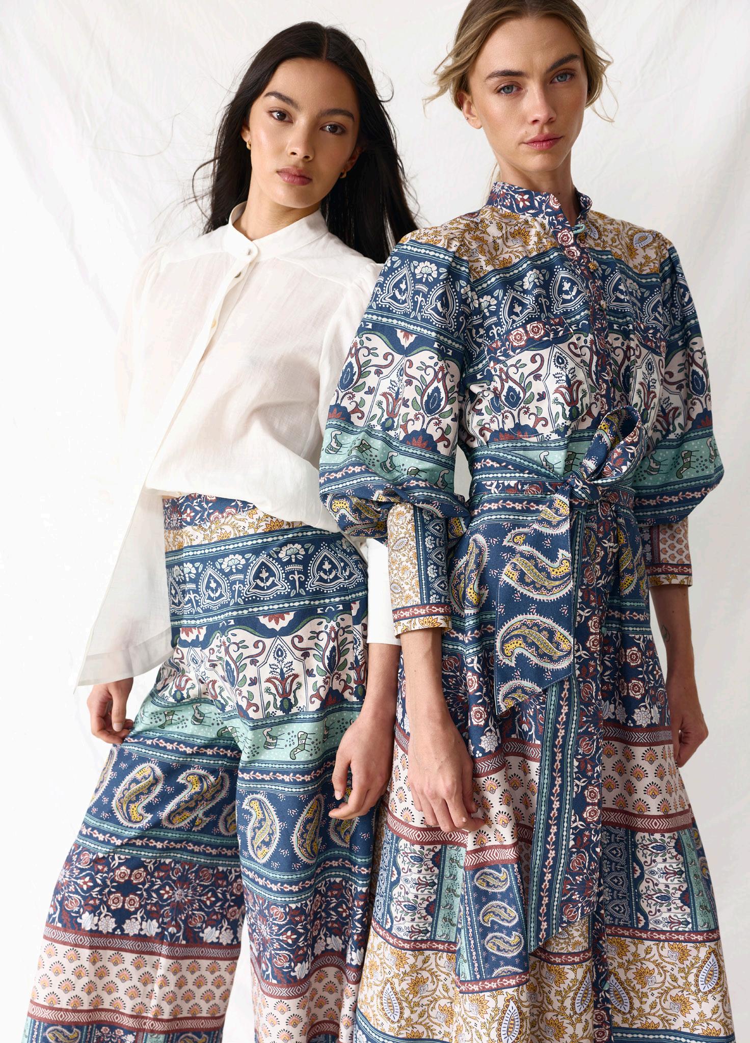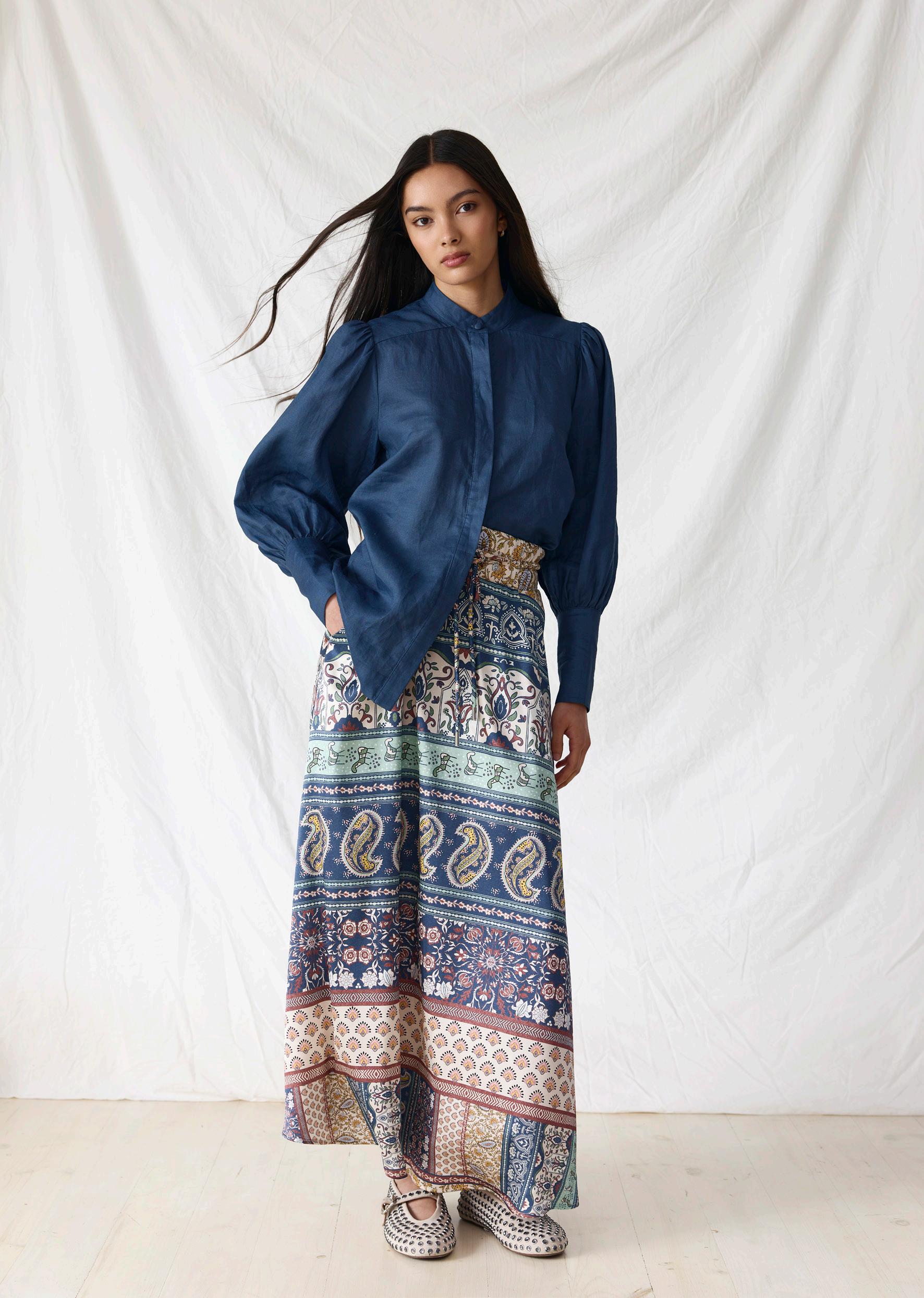 #3602 ona shirt. marine options. chalk + fiesta print #8670 joe skirt. fiesta print