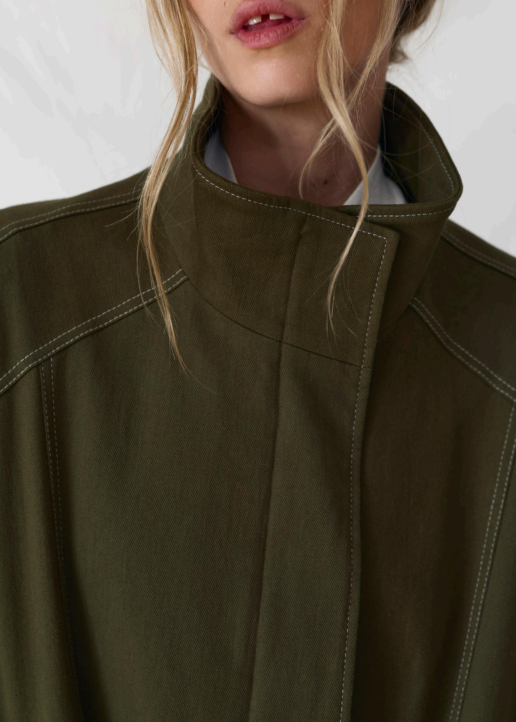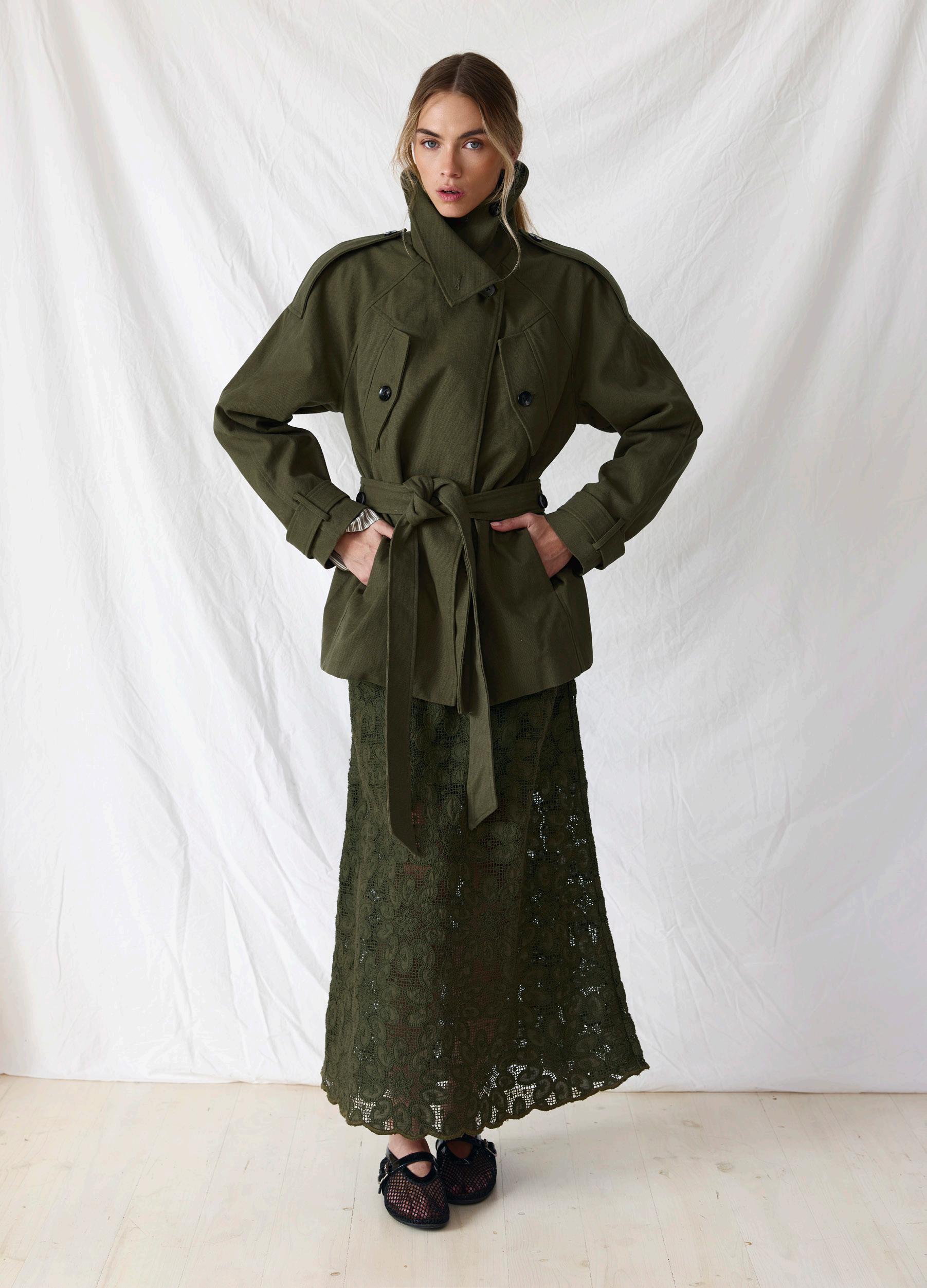 #5156 eli short trench. biscotti option. olive