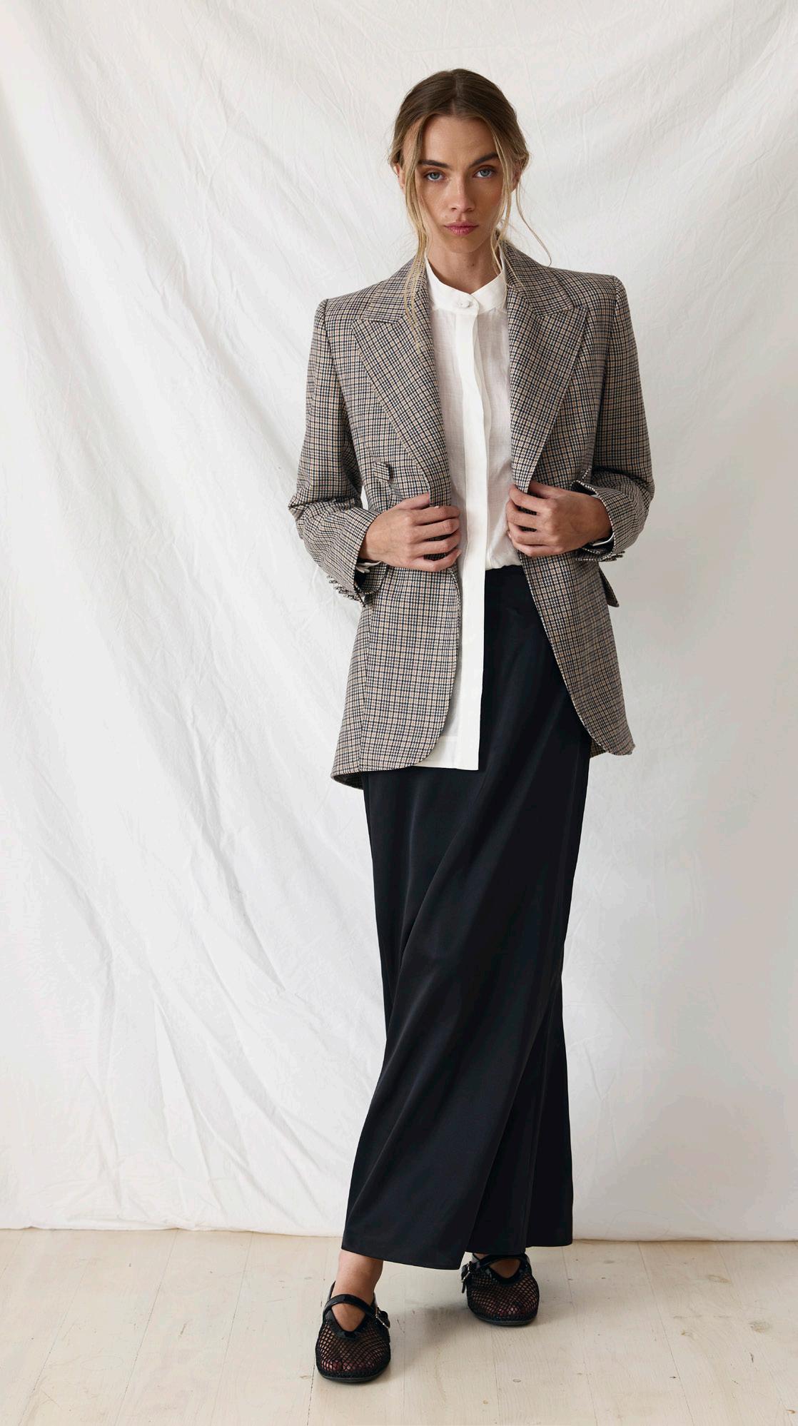 #5157 banksia blazer. black options. toffee check
