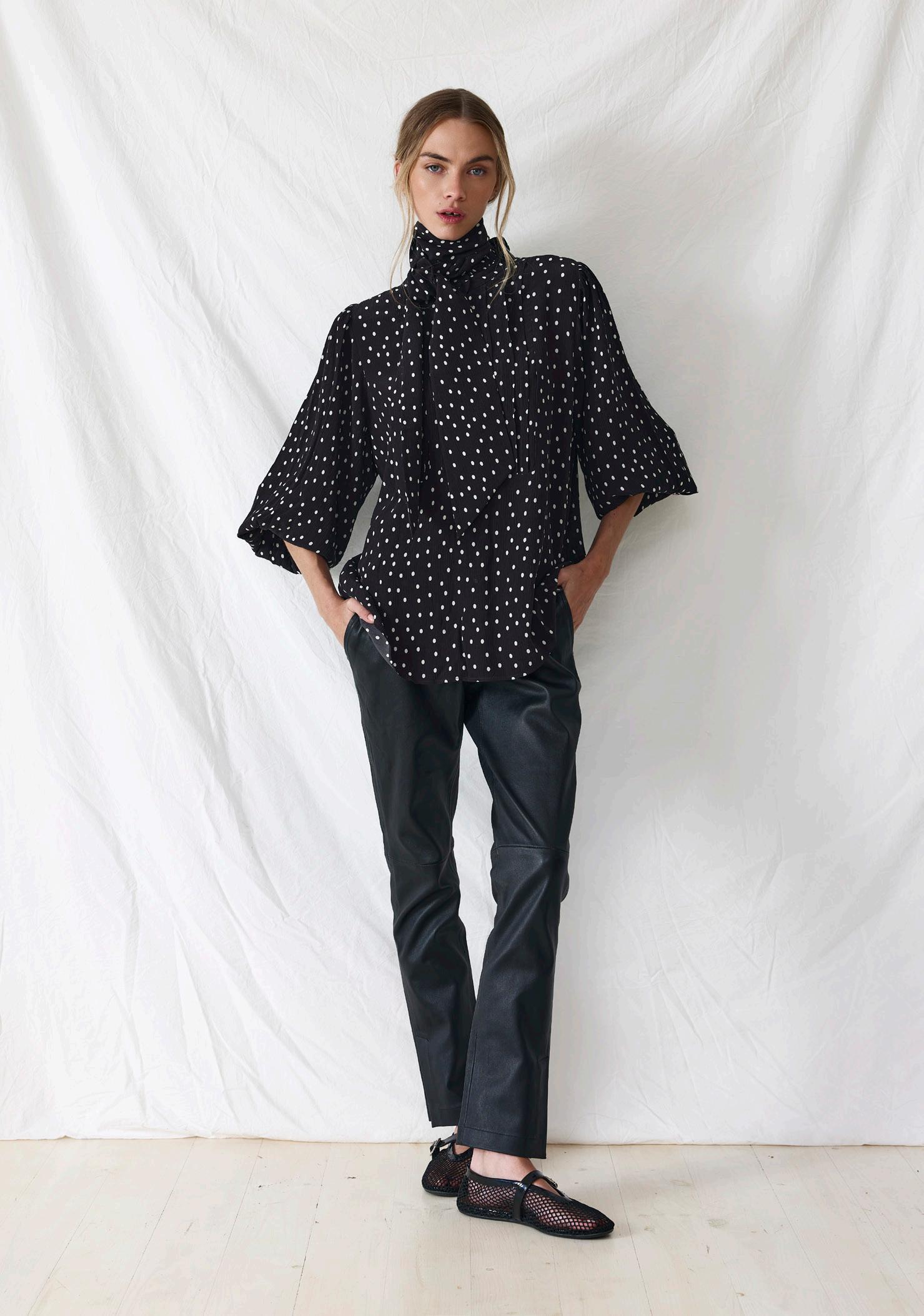 #9668 gina pant. black spot options. black + olive + olive spot