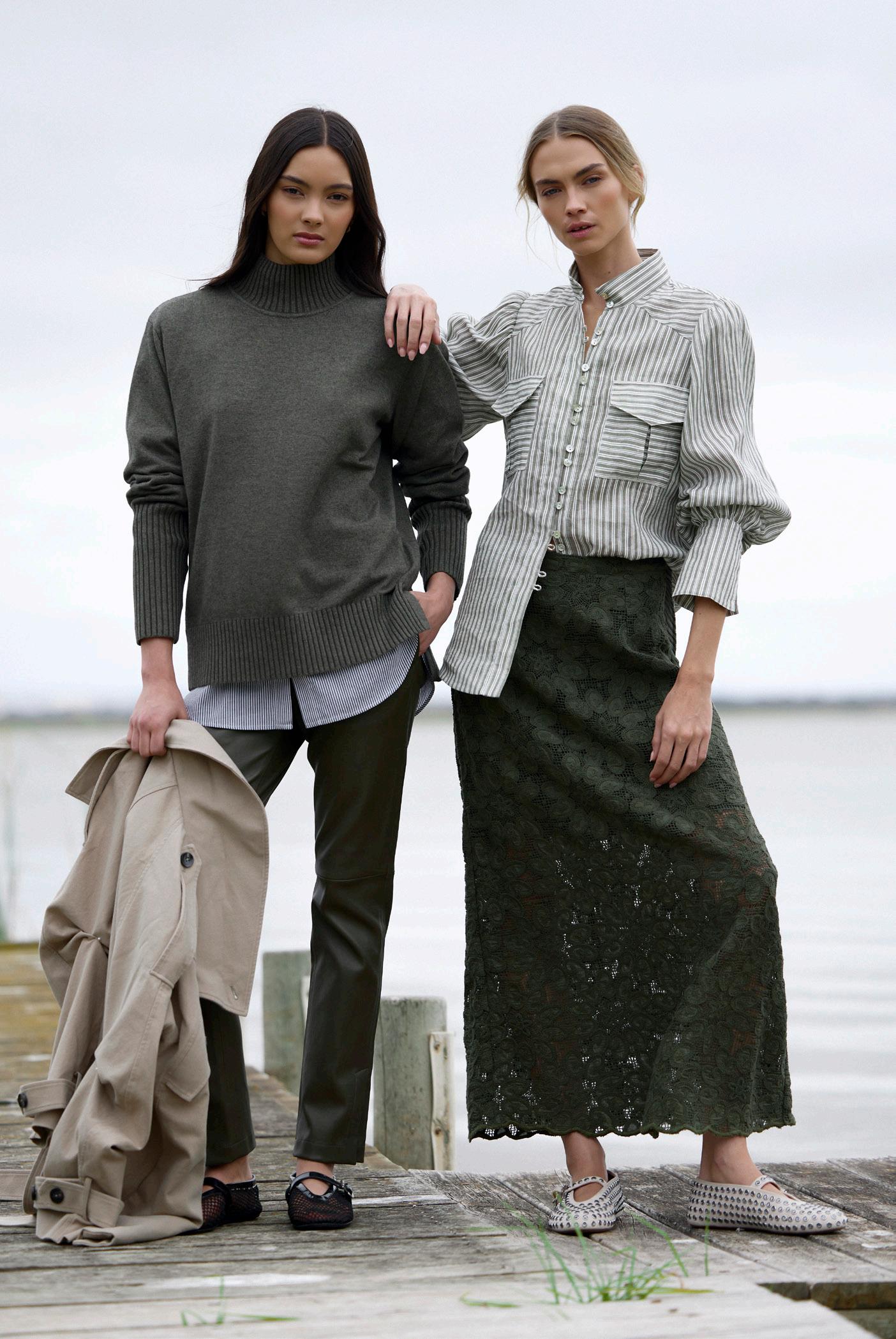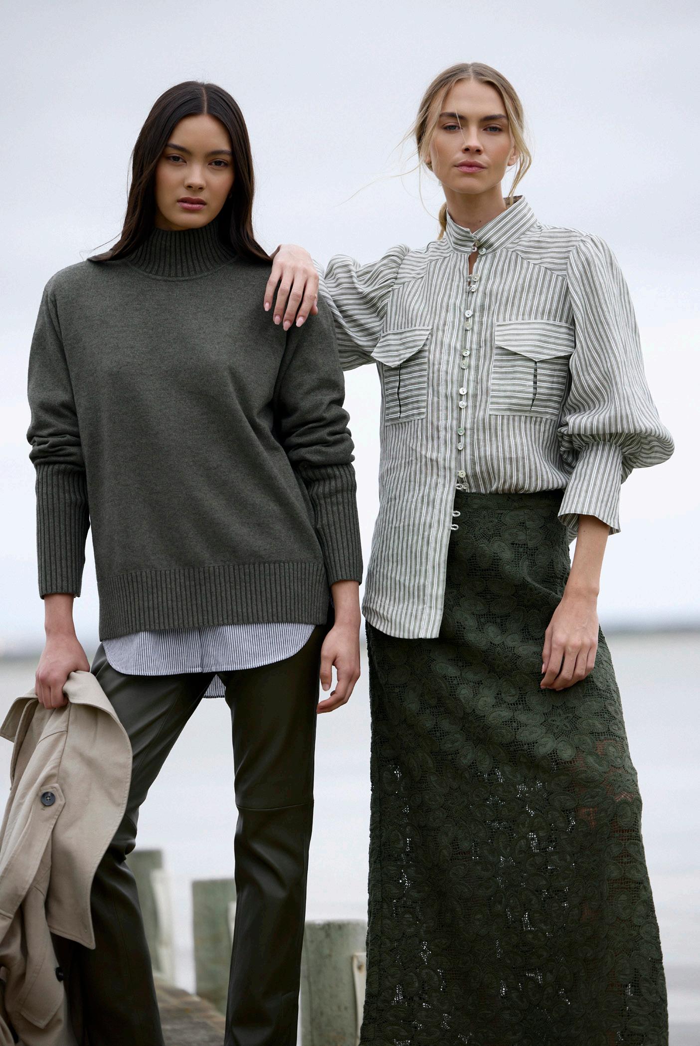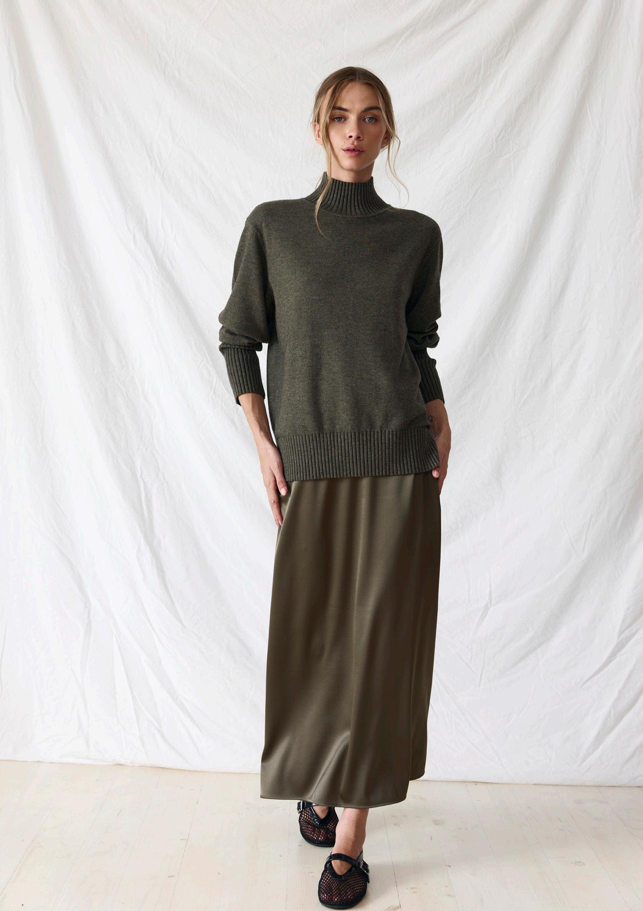 #7140 mae knit. heather #8601 willa skirt. black options. olive