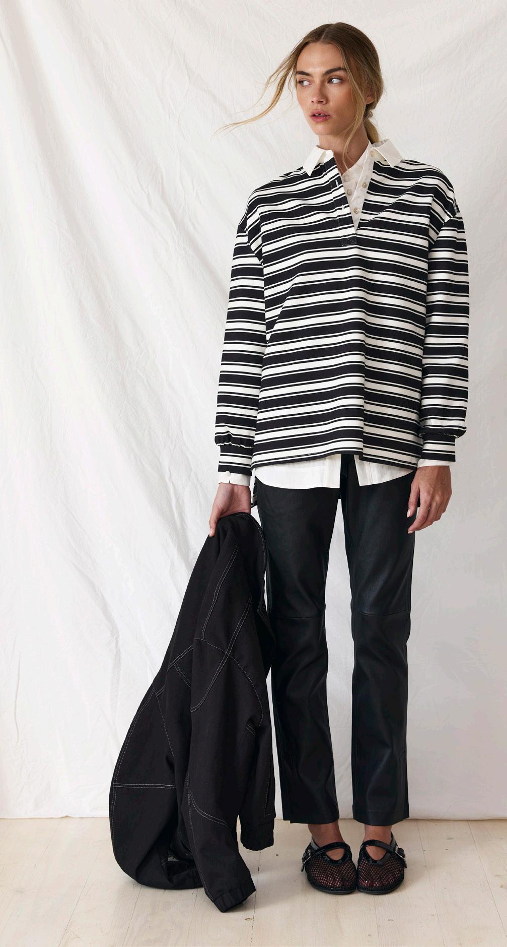 #8605 tildi shirt. coal stripe options. marine stripe #9664 olly jean. biscotti