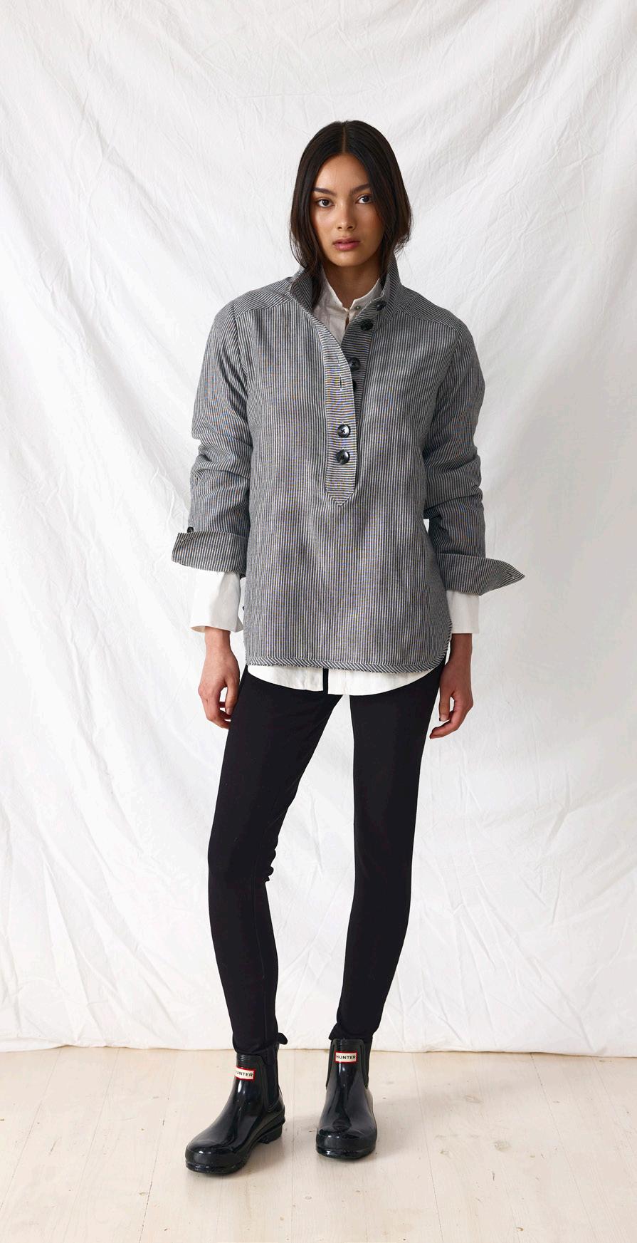 #8605 tildi shirt. coal stripe options. marine stripe