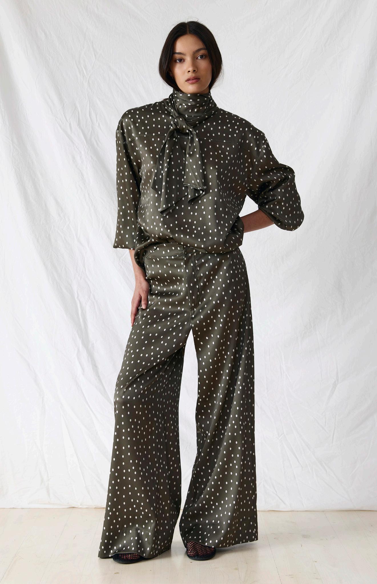 #9668 gina pant. olive spot options. black + black spot + olive