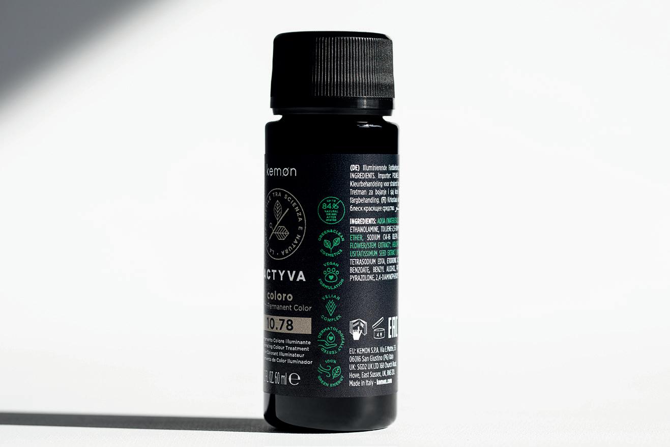 Actyva Coloro The Permanent Hair Color bevat tot 95% ingrediënten van natuurlijke oorsprong en Actyva Coloro Demi-Permanent tot 84% na het mengen met de ontwikkelaar Actyva Coloro Cream Activator.