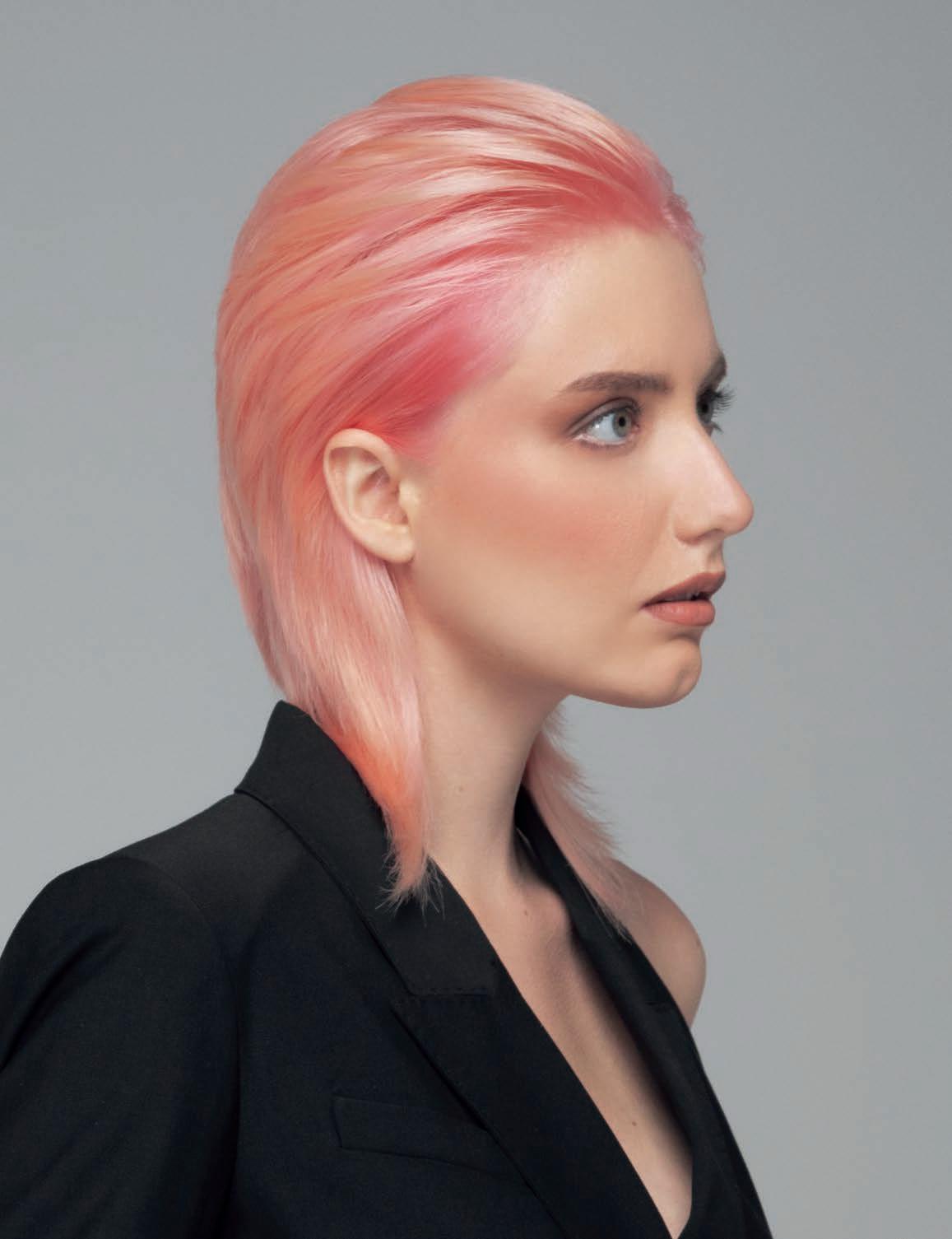 4. Dry hair using Neuro Dry+ and apply Formula 2 using New Apricot Crush in the mid lengths and blending Hot Pink into the root area to create depth;