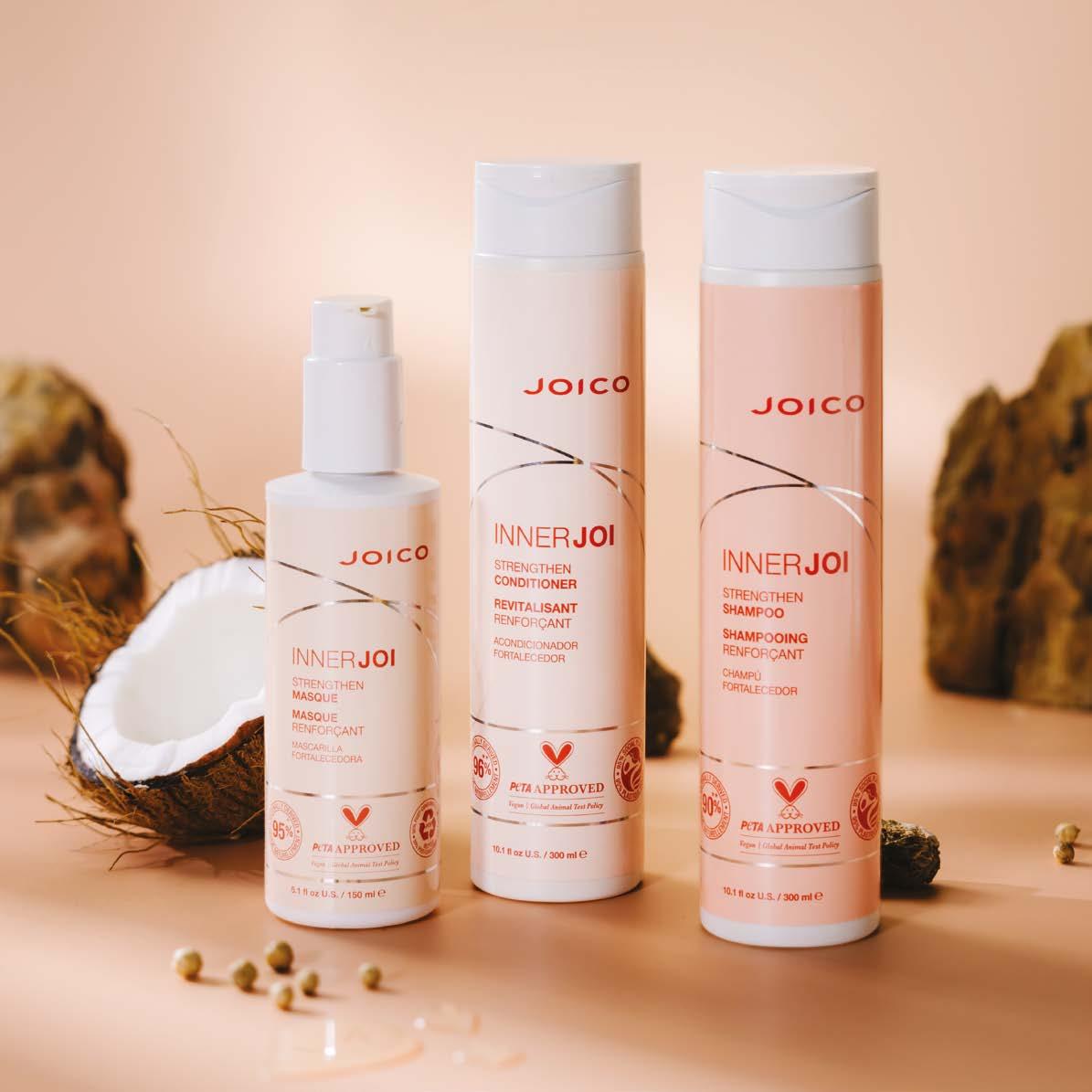 geef je overbehandeld en overwerkt haar wat liefde. Onze INNERJOI STRENGTHEN-formules, gemaakt met kokosnooten Abessijnse olie, helpen beschadigd haar* te herstellen terwijl ze de haarlokken versterken om het risico op haarbreuk te verminderen.