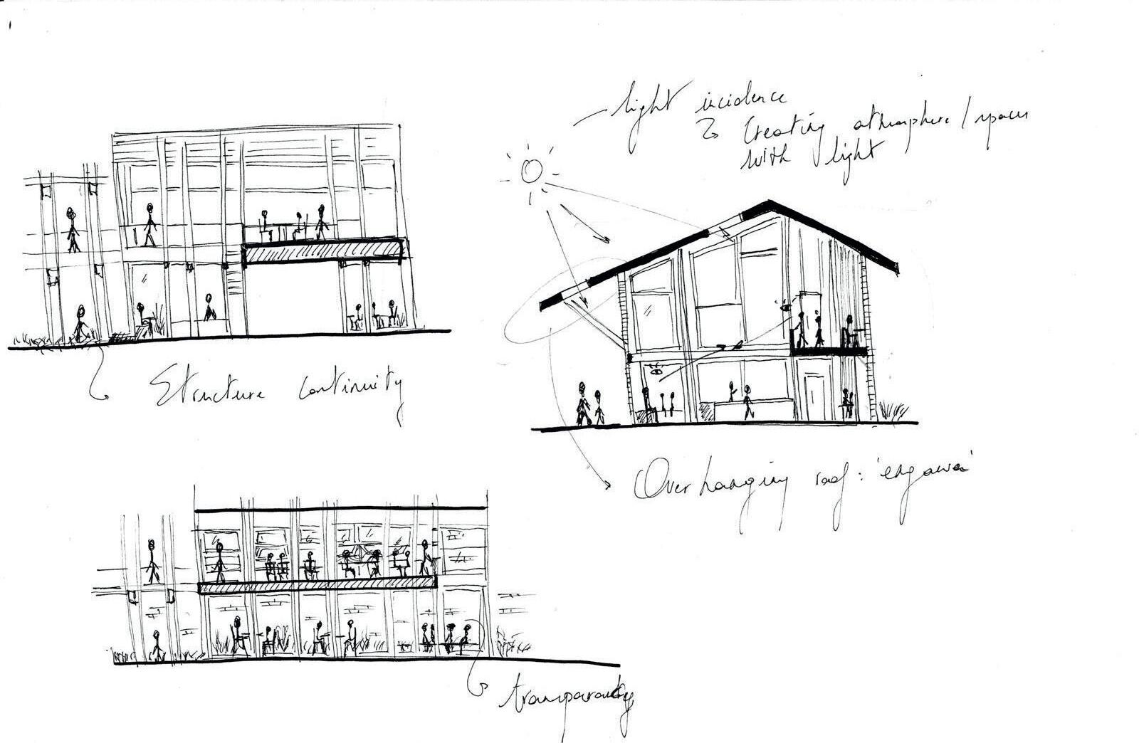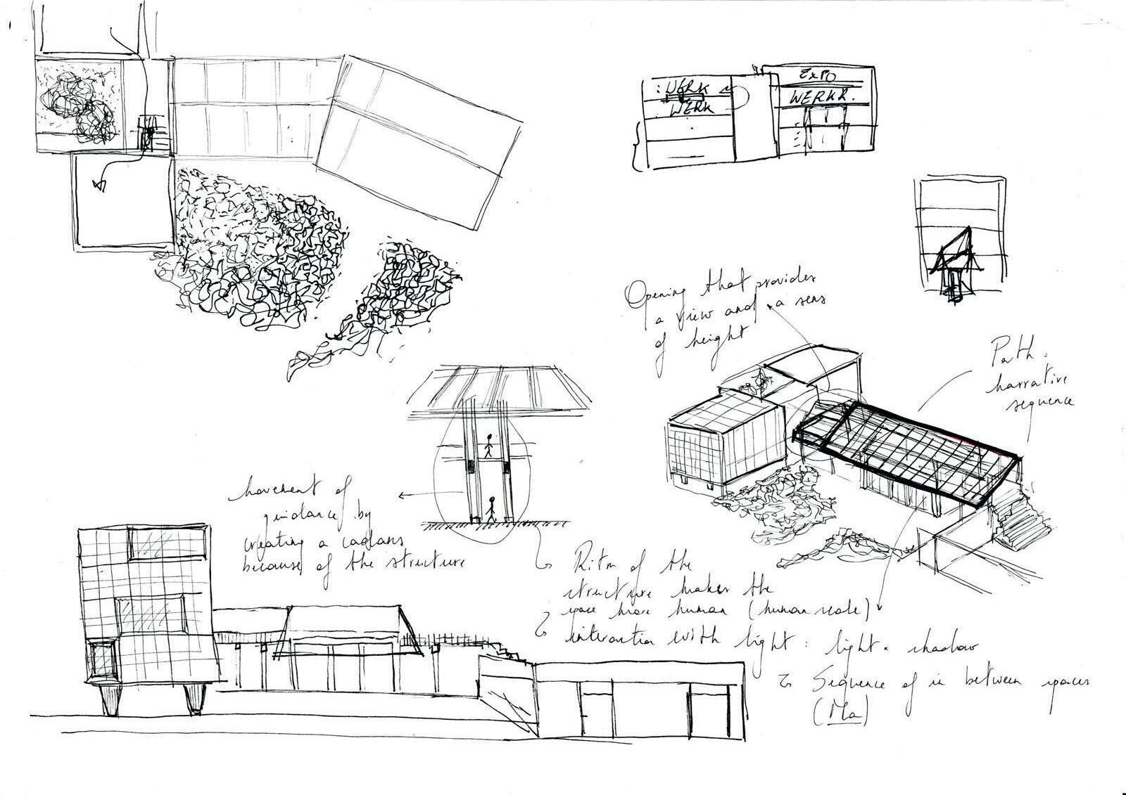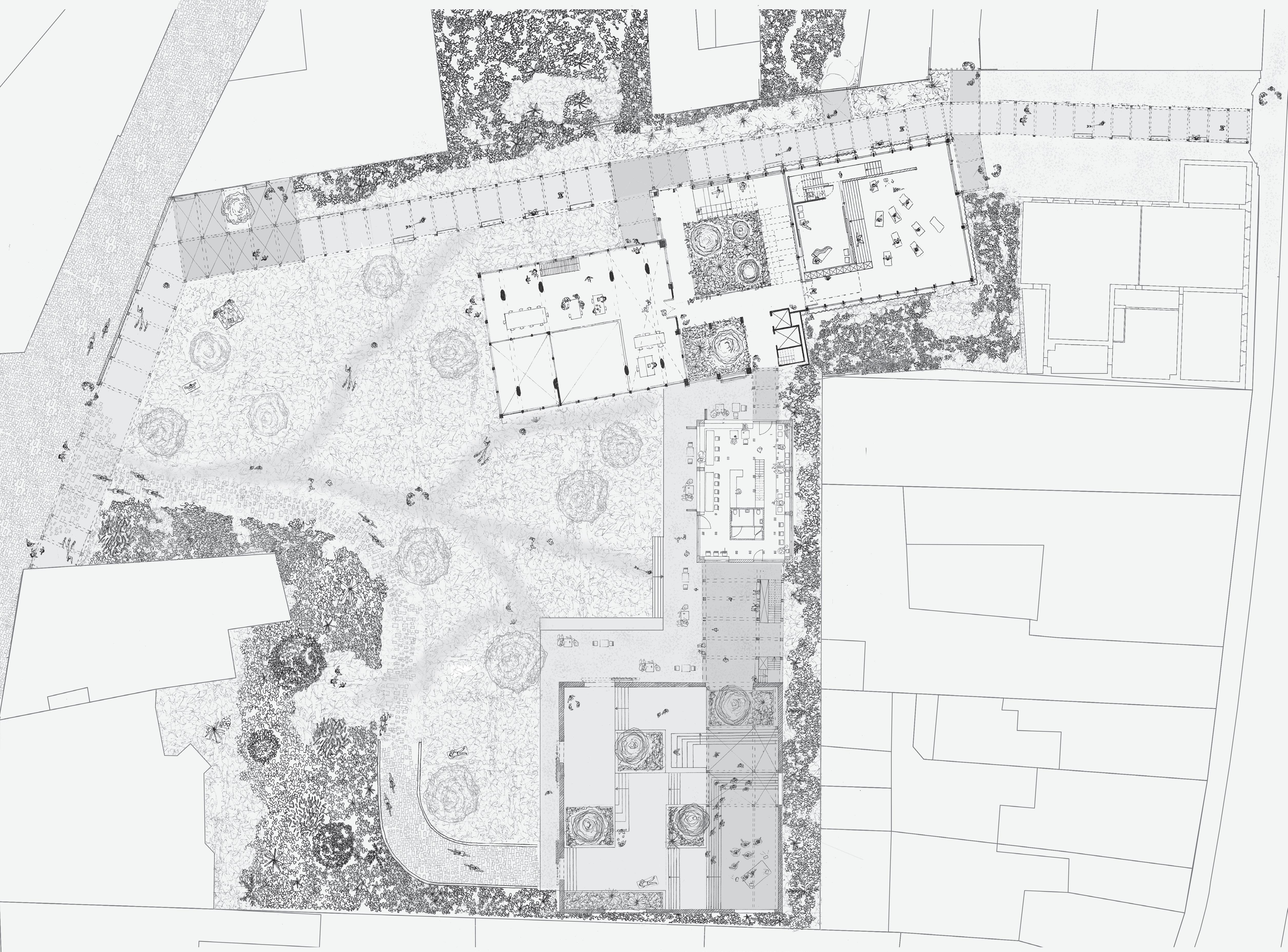 Layering is therefore adopted as a key design strategy, applied to both the new programme and the landscape design. Each successive layer gently transforms the atmosphere, guiding users from more public spaces toward increasingly intimate and sheltered environments.