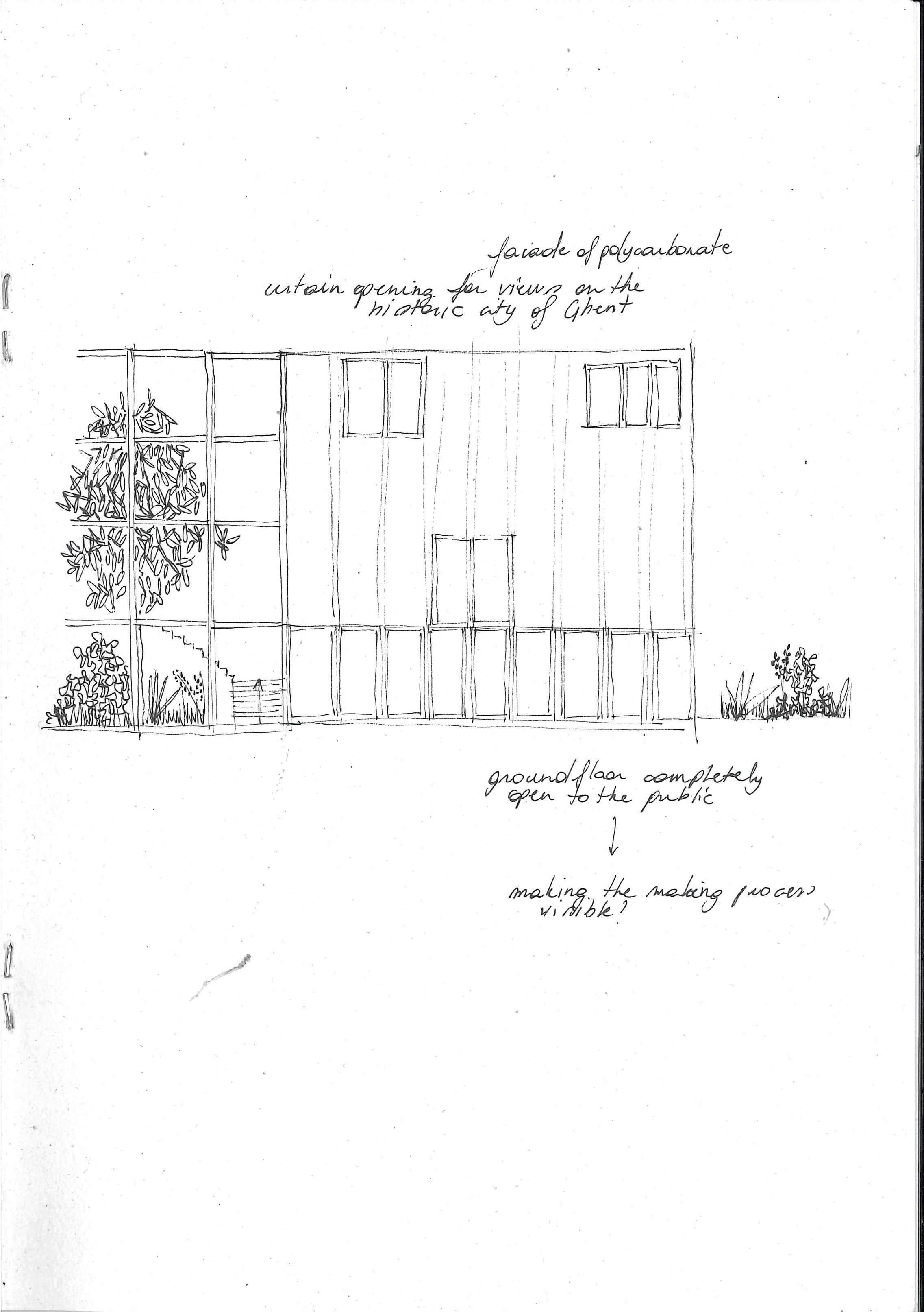 By examining the City of Ghent’s future spatial programme and linking it to our site observations, two major needs became evident: the growing demand for spaces that support creative and making practices, and the need for more green and biodiverse environments within the city centre. In response, the project proposes the creation of a makerspace that functions as a shared environment where creative individuals can meet, work, and exchange ideas. At the same time, the design introduces green and biodiverse spaces that enhance the urban experience for both wandering tourists and local residents, contributing to a more inclusive and resilient city centre.