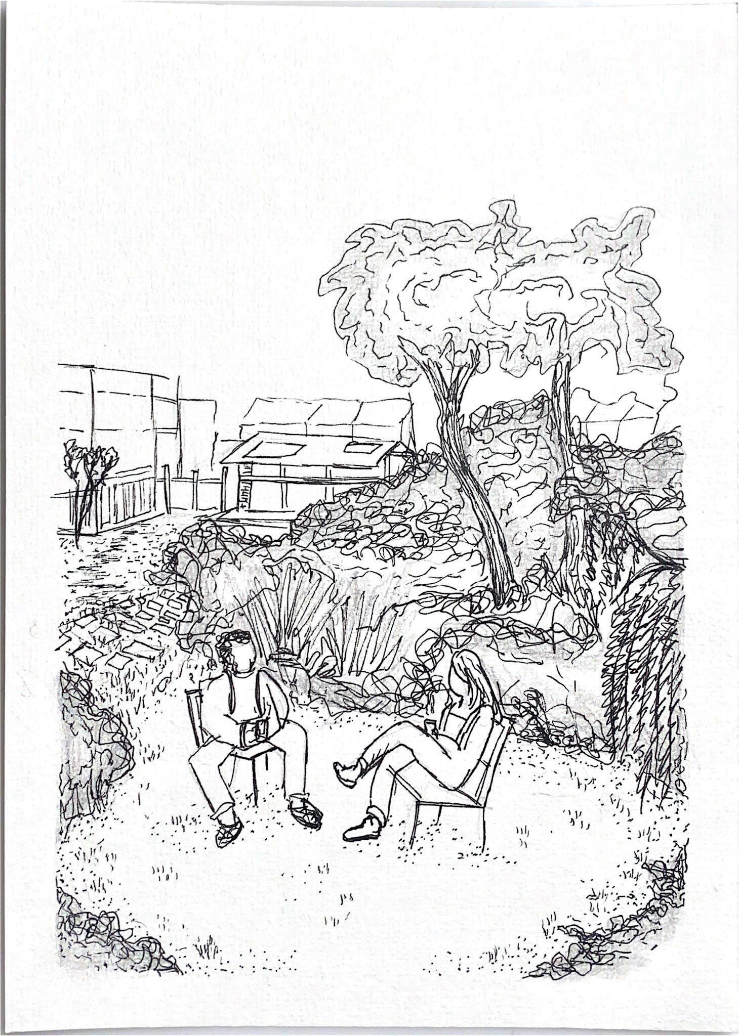 The project builds upon the existing structure to create a subtle separation from the open park, introducing a sense of calm in response to the heavy flow of traffic across the site. Adjacent to the cafeteria, this results in a small auditorium that can also function as a quiet garden space, while on the opposite side a building is dedicated to local makers, artists, and students.