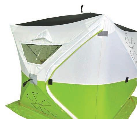Se i au o a ic, or a le ice fi hing en which can e erec ed ju in econd . ura le and e i le fi ergla fra e wi h uick erec u rella y e y e . ce anchor for fa ening en o he ice are included. ind and wa er roof a erial will ro ec fro ou er ele en and addi ional en ila ion window ro ide air ow i nece ary.