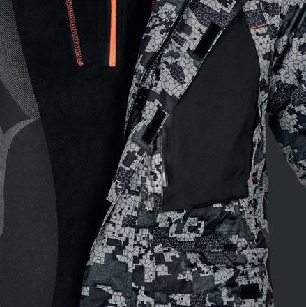 • Two front pockets ru hed, war eece in ide la ic cu and wai