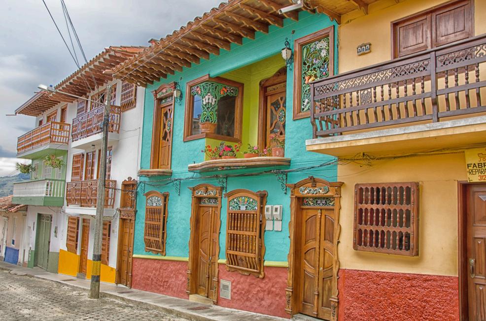 Las fachadas pintadas en tonos vivos verdes, azules, rojos, naranjas son una expresión del alma jericoana.