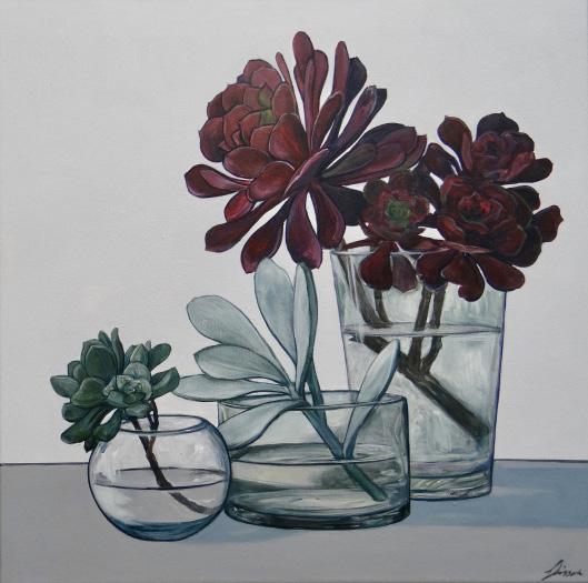 Right: Joanne Sisson, Still Life with Succulents II, 2026, acrylic on canvas, 63x63cm | $2,900
