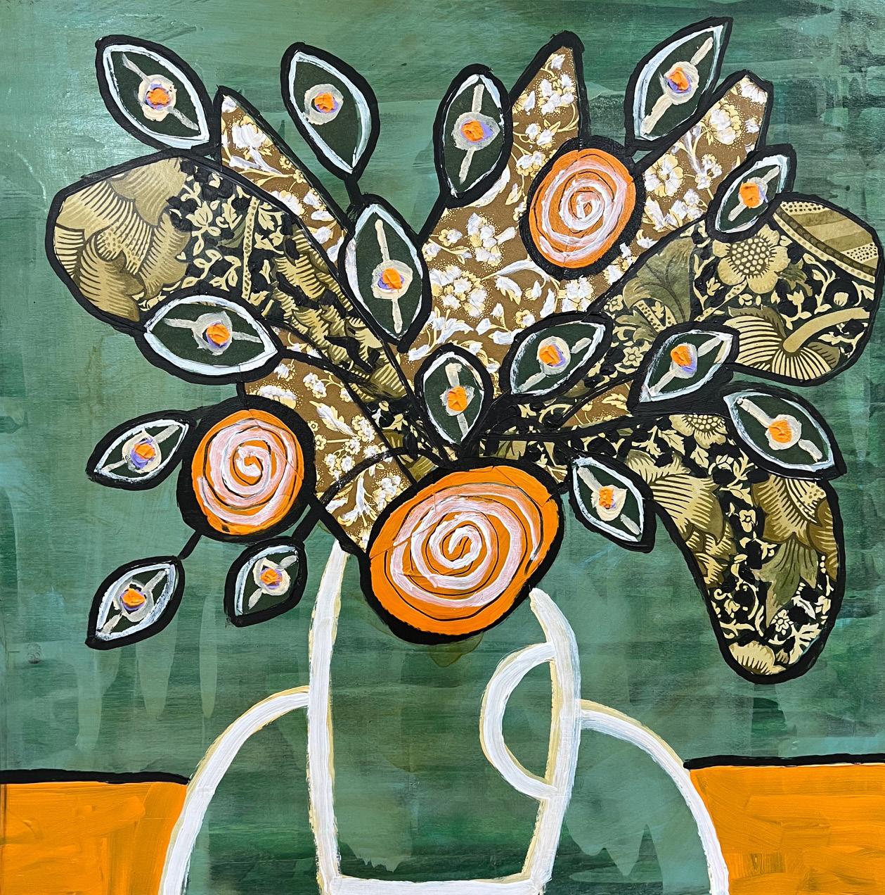 Right: Eleanor Millard, Green Vase, 2026, acrylic on canvas, 50x48cm | $3,400