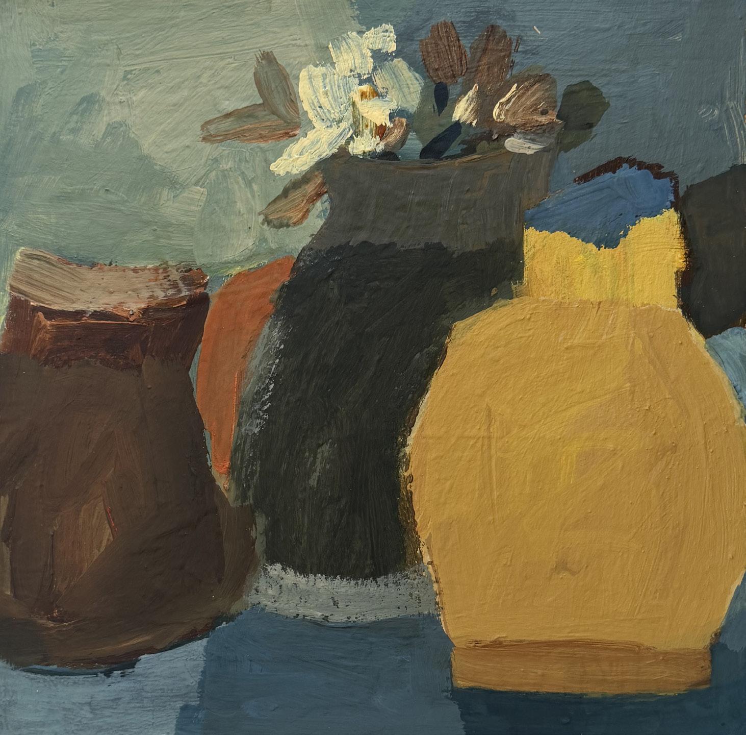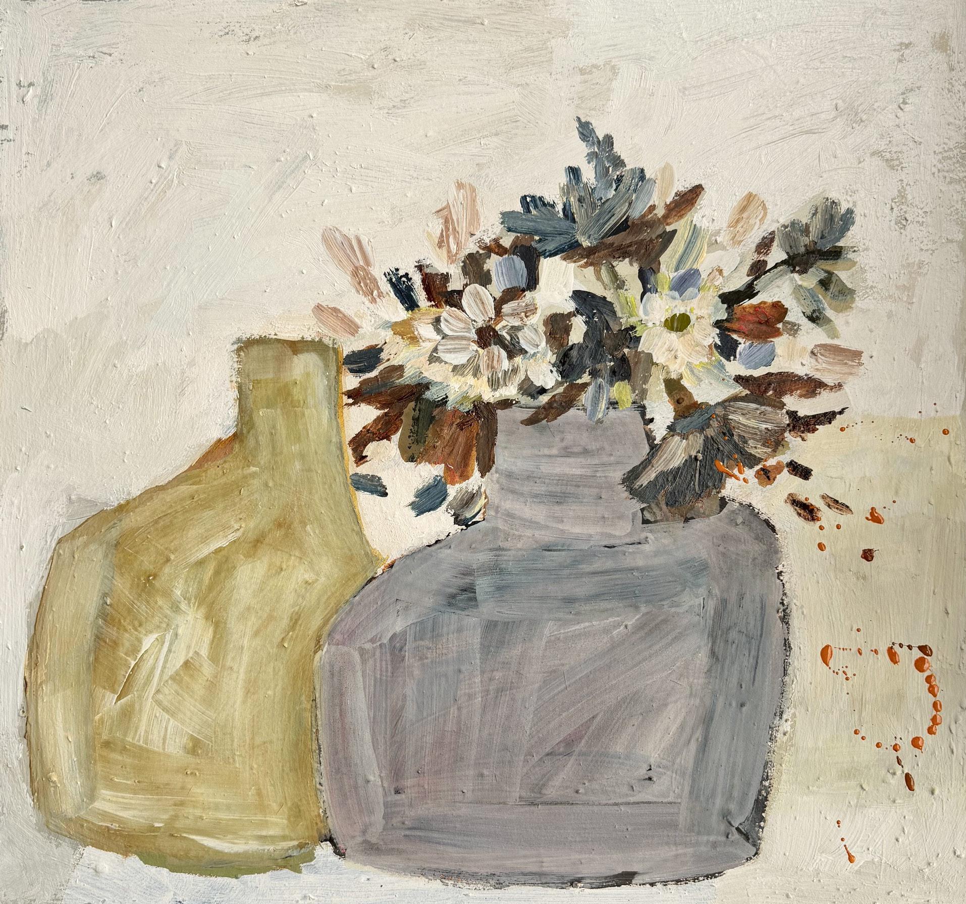 Left: Eleanor Millard, Yellow Vase, 2026, acrylic on canvas, 42.5x44.5cm | $3,200