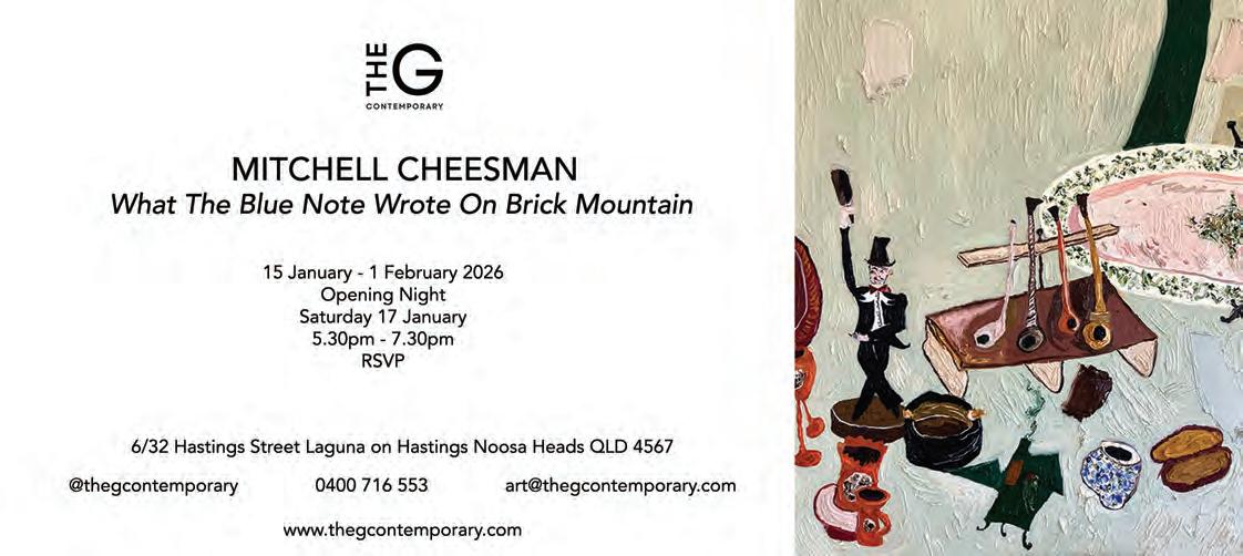 An eclectic collection of artists rotated weekly, with a special showcasing of work by Peta Minnici. when Throughout February where The G Contemporary, 6/32 Hastings Street, Laguna on Hastings, Noosa Heads. 0400 716 526 or the gcontemporary.com