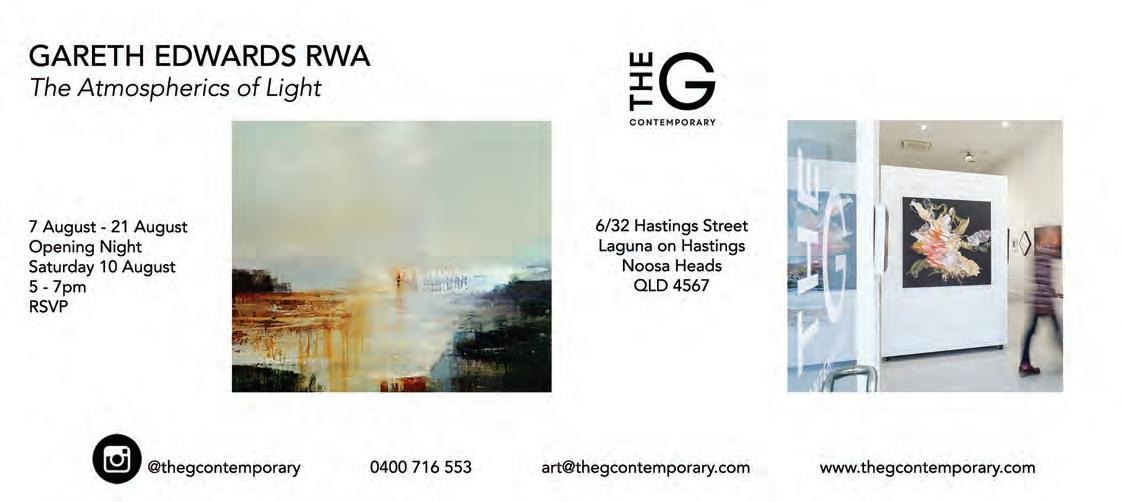 when July 13, 3pm to 6pm where The G Contemporary, 6/32 Hastings Street, Laguna on Hastings, Noosa Heads. 0400 716 526 or thegcontemporary.com
