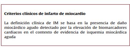 El término infarto agudo de miocardio (IAM) debe utilizarse cuando se evidencia necrosis miocárdica en el contexto clínico de isquemia miocárdica. En estas condiciones, cualquiera Infarto agudo de miocardio.