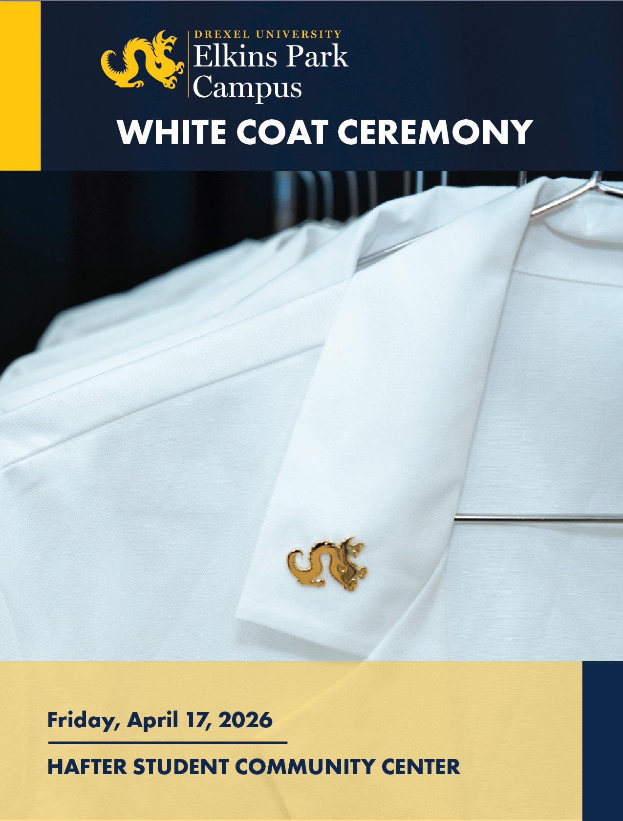 Welcome to Drexel University’s Elkins Park Campus White Coat Ceremony, where students in our Doctor of Optometry, Doctor of Audiology, Master of Science in Clinical Optometry, and Master of Science in Orthotics and Prosthetics degree programs receive the symbol of their professions – the white coat.