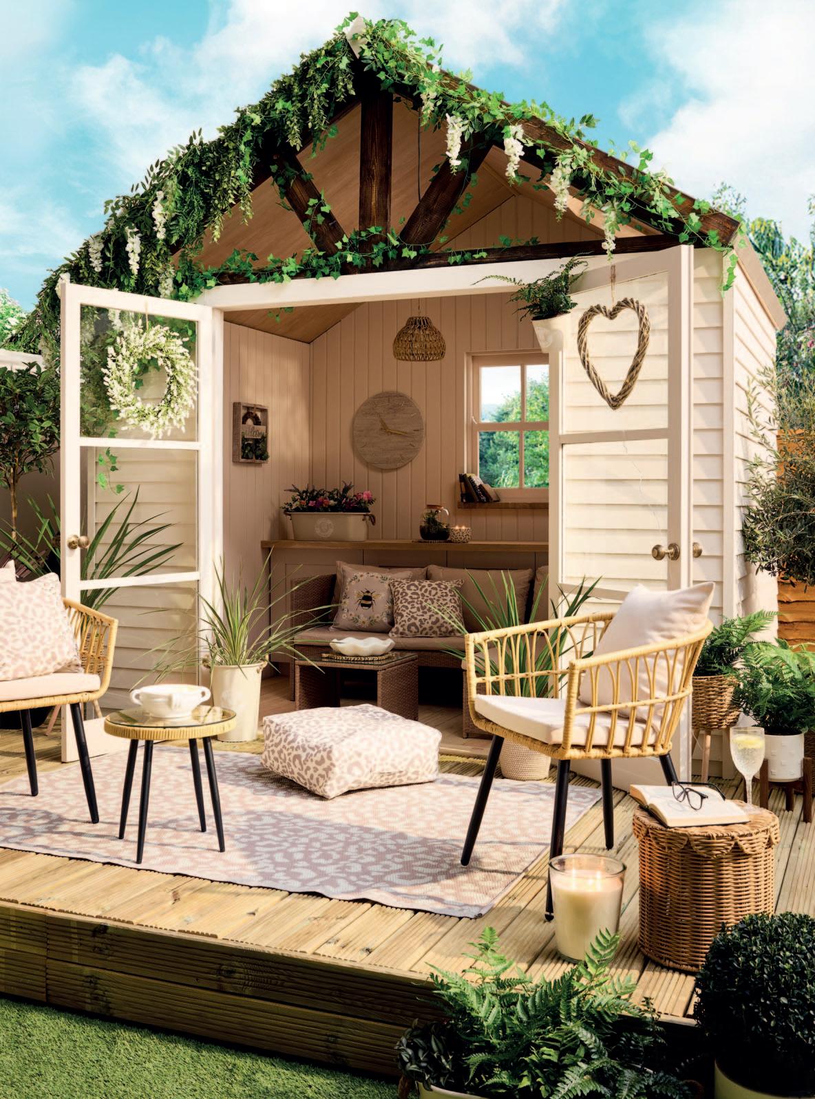 Natural Garden ideas at B&M: Leaf stems, £3. Wisteria garland, £8. Hampshire three-piece Bistro Set, £125.