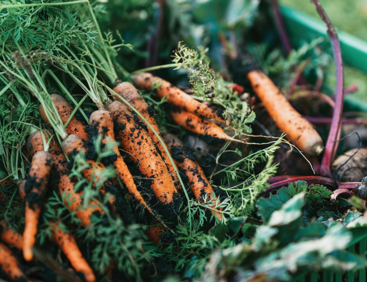 The transition from garden to kitchen can be so easy. Establish a harvest ritual where family members gather the ingredients for dinner. Young, homegrown veggies don't need complex recipes. A spring carrot pulled straight from the earth only needs a quick scrub and a steam. And for more kid-friendly prep, the children can pod the peas or tear up the mint leaves for a fresh spring