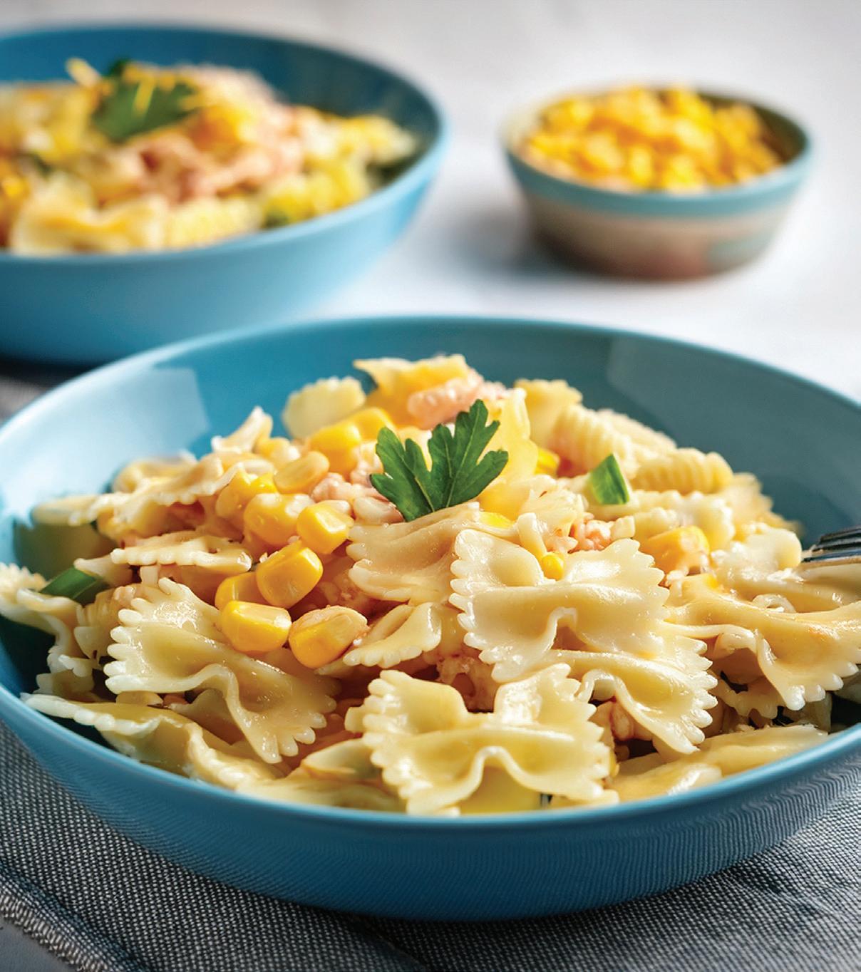 Heat olive oil in a large pan over medium heat. Add onion and cook until softened (5–6 mins). Add garlic (cook 2 mins). Add the chicken and Italian herbs and stock powder, toss to coat. Add the sweetcorn and gently fold through. Reduce heat to low.