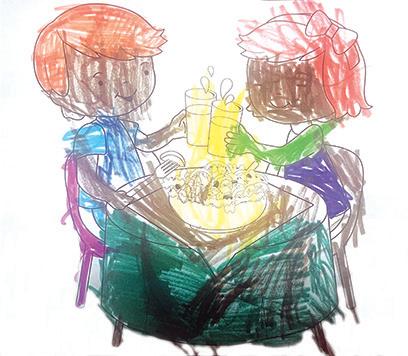 Rory, aged 4, sent in this delightful Healthy Eating Week Colouring – although it looks like these diners might have spilt their drinks all over their salad!