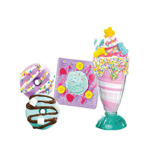 Although eating a slimy waf fe would be absolutely disgusting, you can still have bucketloads of fun making slimy treats! With the So Slime Sensations Sugary Crush Deluxe Pack you can mix, squish, and stretch slimy ingredients. You can even pretend that you’re making gooey waf fes, doughnuts and milkshakes. Once you’ve fnished creating a dessert, crushing it will turn it back into slime!