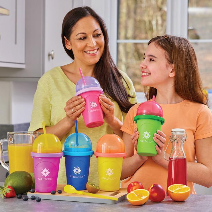 In the past, you might have had to walk to the nearest ice cream van to get a slushy. Now, with the ChillFactor Slushy Maker, you can make delicious slushies at home! All you have to do is put your slushy maker into the freezer and wait for it to freeze. Once it’s frozen, you just need to add your favourite drink and squeeze! In only a few seconds, you’ll see a tasty slushy appear right before your eyes. Simply freeze, squeeze and enjoy. You don’t even need to add ice!