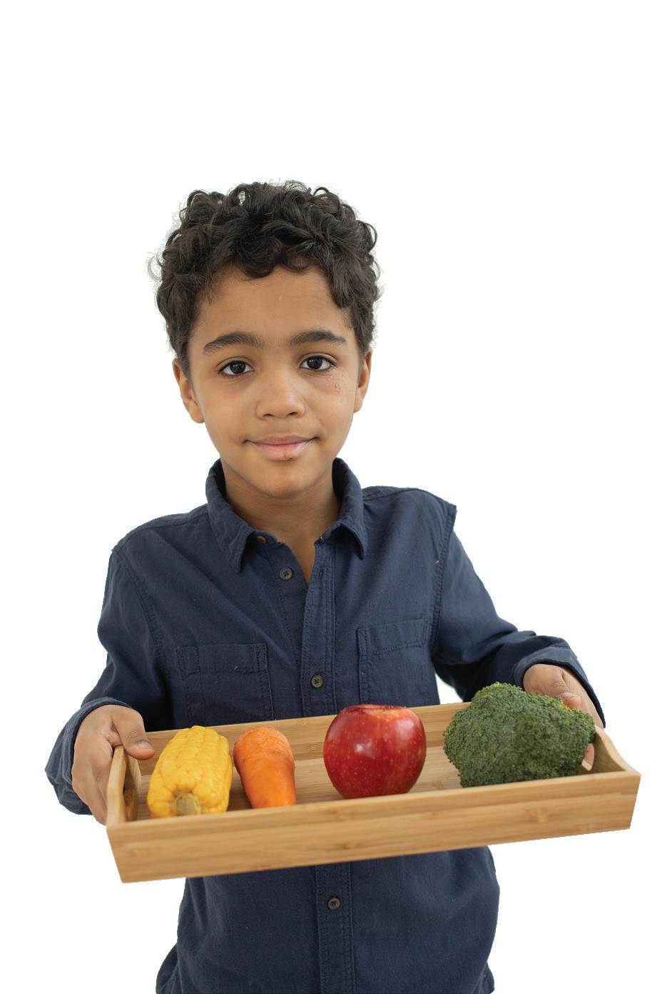 Fruit and vegetables should make up just over a third of the food we eat. Aim to eat at least ve portions of fruit or vegetables a day. These can be fresh, frozen, tinned, dried or juiced. However, make sure you don’t count more than one glass of juice or smoothie a day.