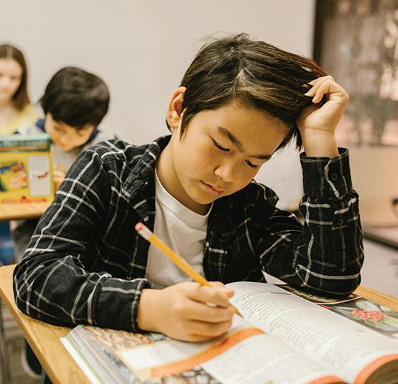 Patch is getting ready for his frst exam, but he’s lost everything in his pencil case somewhere on these pages! He’s lost his purple pencil, red ruler and silver scissors! Can you fnd them for him?