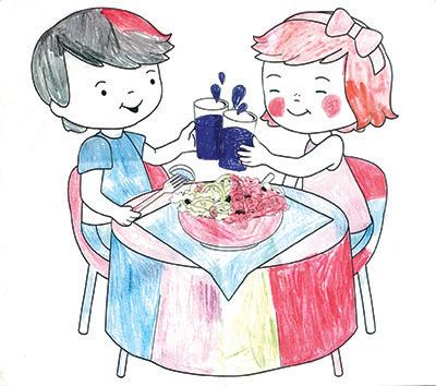 This bright and brilliant Healthy Eating Week Colouring was sent to us by Felicity, aged 6. Adding green hearts to the tablecloth was an excellent idea, Felicity!