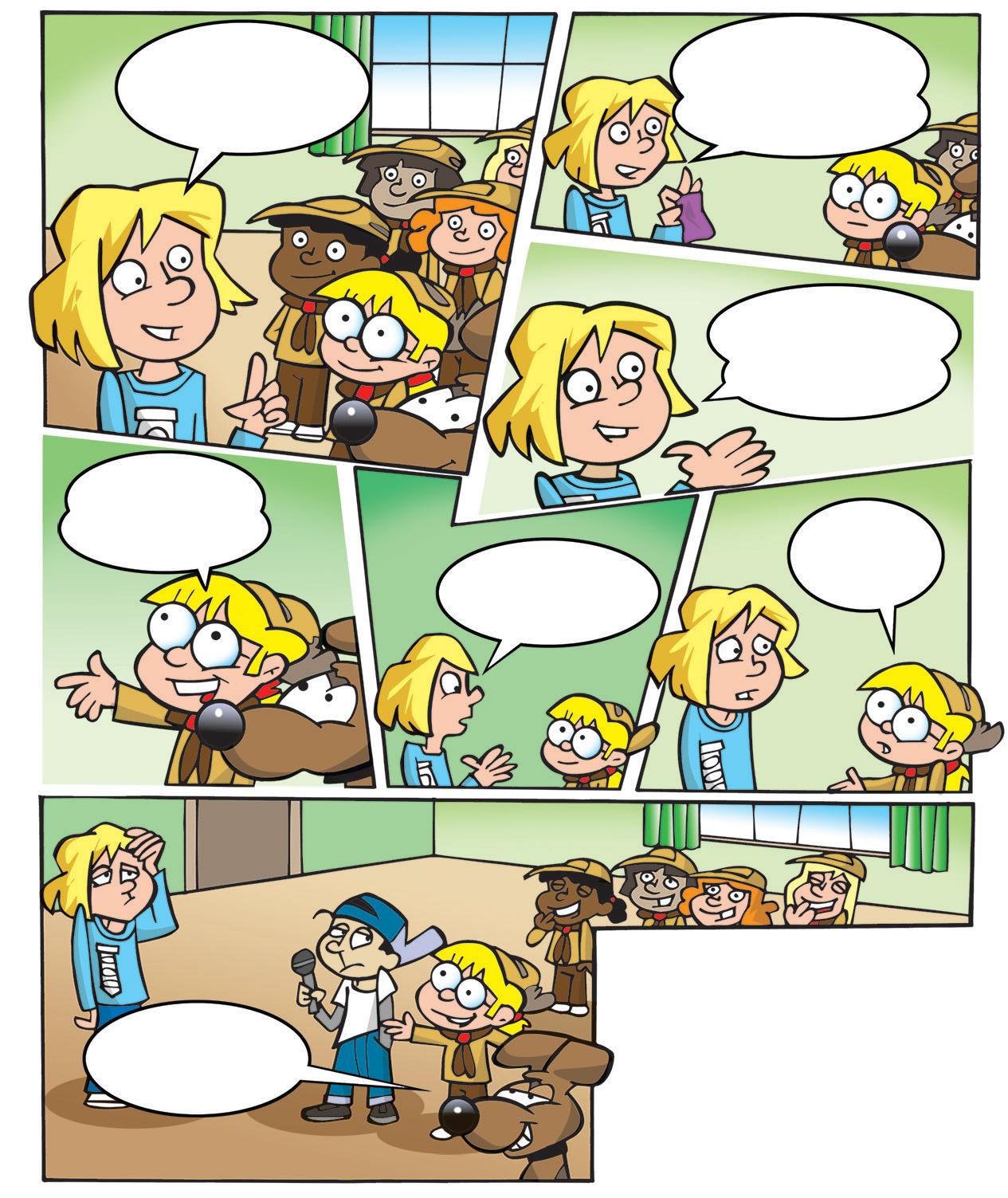 1 There is a bird in the sky. 2 There is an extra cloud. 3 The word ‘dead’ has changed to ‘alive’ in the speech bubble. 4 The sign to Emmaus has changed to one mile. 5 There is an extra tree in the background. PATCH’S PROBLEM: Page 14. GIGGLE IN THE MIDDLE