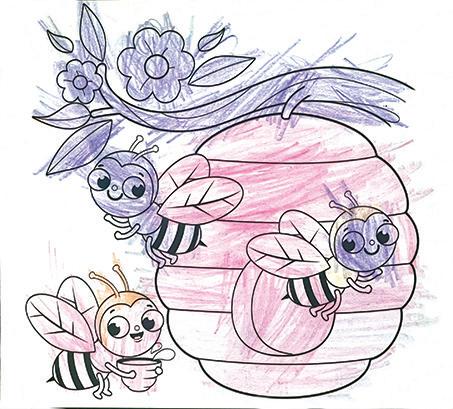 Here’s an un-bee-lievable colouring sent to us by Shalom, aged 4. The bees look very happy with their pink hive!