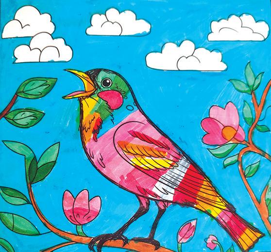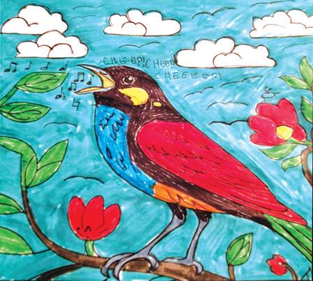 Jayden, aged 9, has also coloured a bird for us. This one is singing a happy spring song. Great work, Jayden!