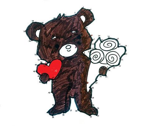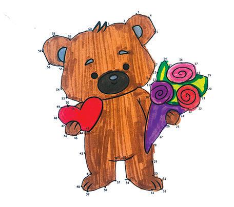 The bear in this Valentine’s Day Dot-to-Dot has a lovely bunch of flowers! It was sent to us by Ruby, aged 9, and it’s full of creative flair!