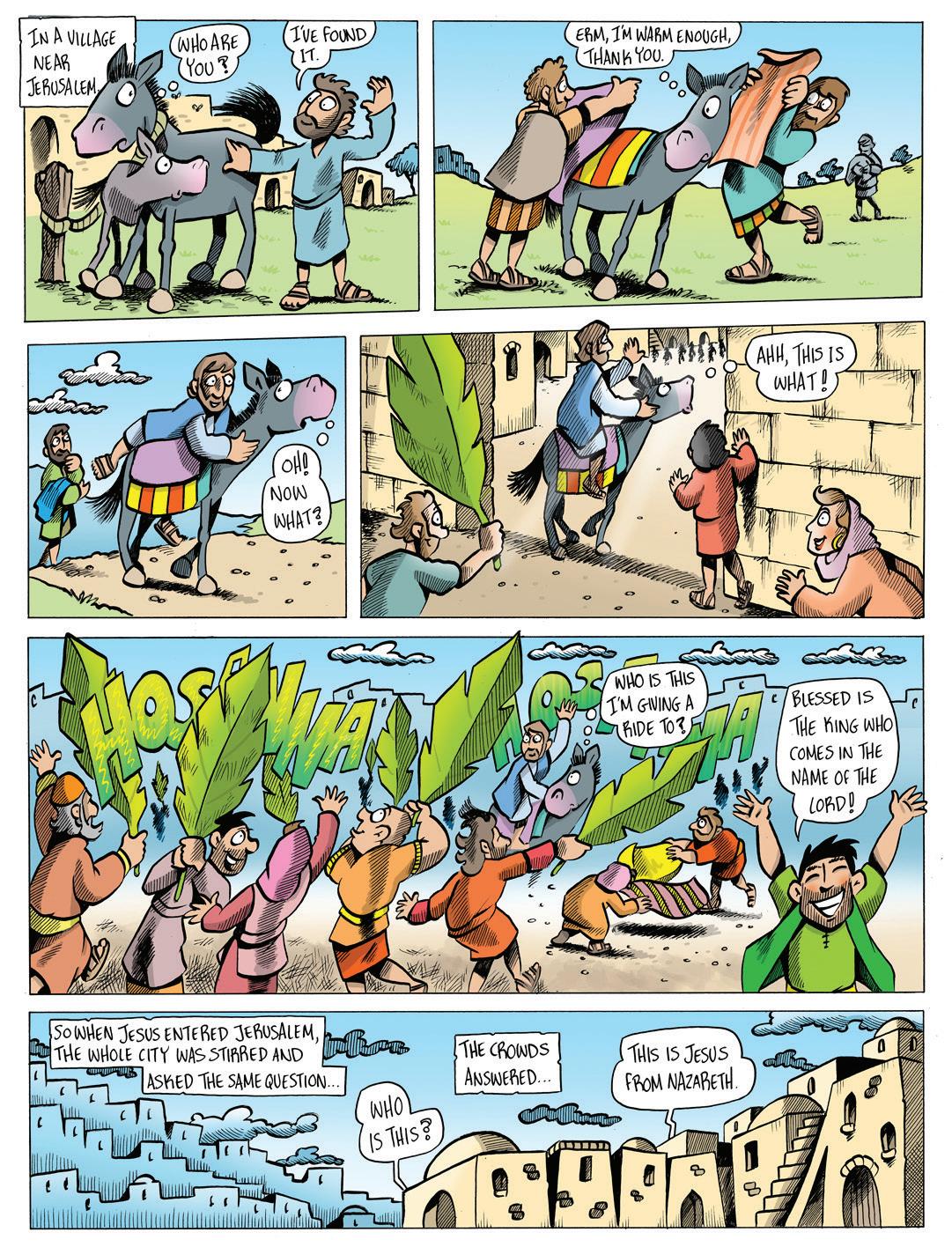 here are lots of surprises in this week’s Bible cartoon! First, Jesus surprised the disciples by asking them to get a donkey – they didn’t understand why, but they obeyed anyway.