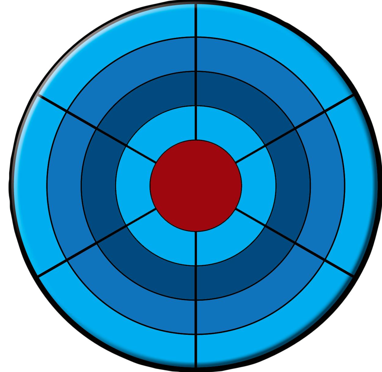 Starting from the outer segments and working towards the middle, write the answers to the clues so they all end with the same letter. Some letters have been included to help you. If answered correctly the outer segments will spell out a new word. Clue: type of fastening.
