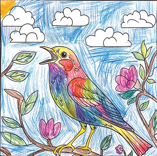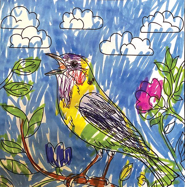 Sophie, aged 6 (who is also the star of this week’s reader profile), has coloured this rainbow bird! It’s beautiful!