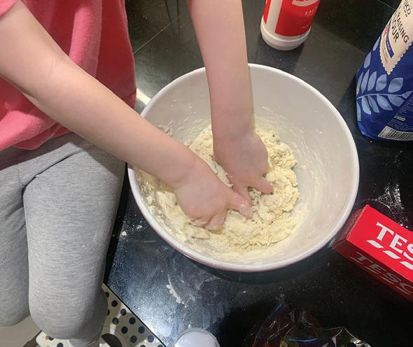 You’ll now need to knead the dough. Fold the dough in half, push it with the heel of your hand, spin the dough around and repeat (again and again and again for a few minutes) – you can ask a grown-up to help.