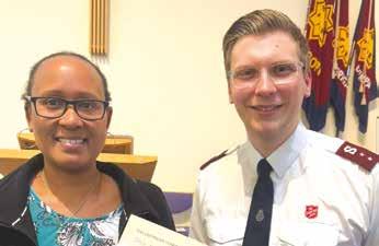 CORPS leader Captain Kate Newland welcomed Anahita Binesh and James Barnett as adherents. Anahita spoke of the life and family she had left in Iran to make a new life in the UK with her husband, Ahmir, and little girl, Anya. On linking up with the corps, she was able to share about what she had left. James spoke of a time he had been a member of Deptford Corps, but circumstances brought him to the south coast. He was made to feel welcome at the corps, where he wanted to renew his commitment. –