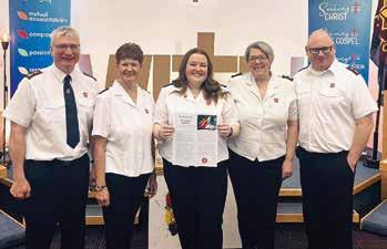 FAMILY and friends joined with the corps to welcome Amelia Burr as she was enrolled as a soldier. Majors Julia and Robert Jepson (Nottingham William Booth Memorial Halls) shared in leading worship with corps leaders Majors Debbie and Dominic Eaton, with Major Robert conducting the enrolment and Major Julia speaking on the meeting’s theme, A Child of God. – IC