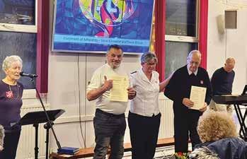 STEVE Kilminster and Trevor Wilson were welcomed as adherents by fresh expressions leader Major Lynne Clifton, during Covenant Sunday worship. Steve initially contacted the corps when he was experiencing homelessness and was trying to help his friend. Trevor was born and bred in the Army but had not regularly attended a corps for many years. Trevor felt that he wanted to start regularly worshipping after his wife, Pauline, was promoted to Glory four years ago. Steve and Trevor spoke about the importance of feeling part of the family at Sheerness Salvation Army and testified to God upholding them through the ups and downs of life, bringing comfort and strength to them. Steve and Trevor are very involved in worship and service at the corps. – LC