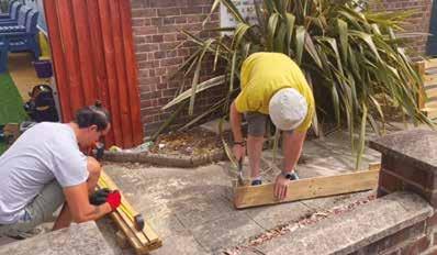 We have containers that store our food bank items and underneath there is good storage space for gardening tools. We see potential for growing our own produce for the Victory Programme, which has helped 180 people so far. We hope to grow some produce to give away.