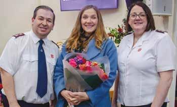 CANTERBURY The corps was pleased to welcome actress Jessica Hynes to their community carol concert. It was wonderful to see Scripture from Luke 2 come alive through her careful retelling of the birth of Jesus. The event was well supported by the community, and the local mission work of the corps was highlighted through the delivery of 675 toy parcels and 270 treat bags to families. Jessica is pictured with corps leaders Majors Alison and Gavin Friday. – GF