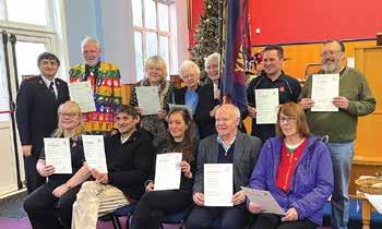 ANN Richardson and Marion Wood were welcomed as adherents by corps officers Majors Louise and Paul Wood. Ann and Marion have attended the corps for several years and participate in many weekly activities. They decided to take a step along their faith journeys by becoming adherents. All of them are pictured with Recruiting Sergeants Cerys and Mat Jenkinson. – CJ